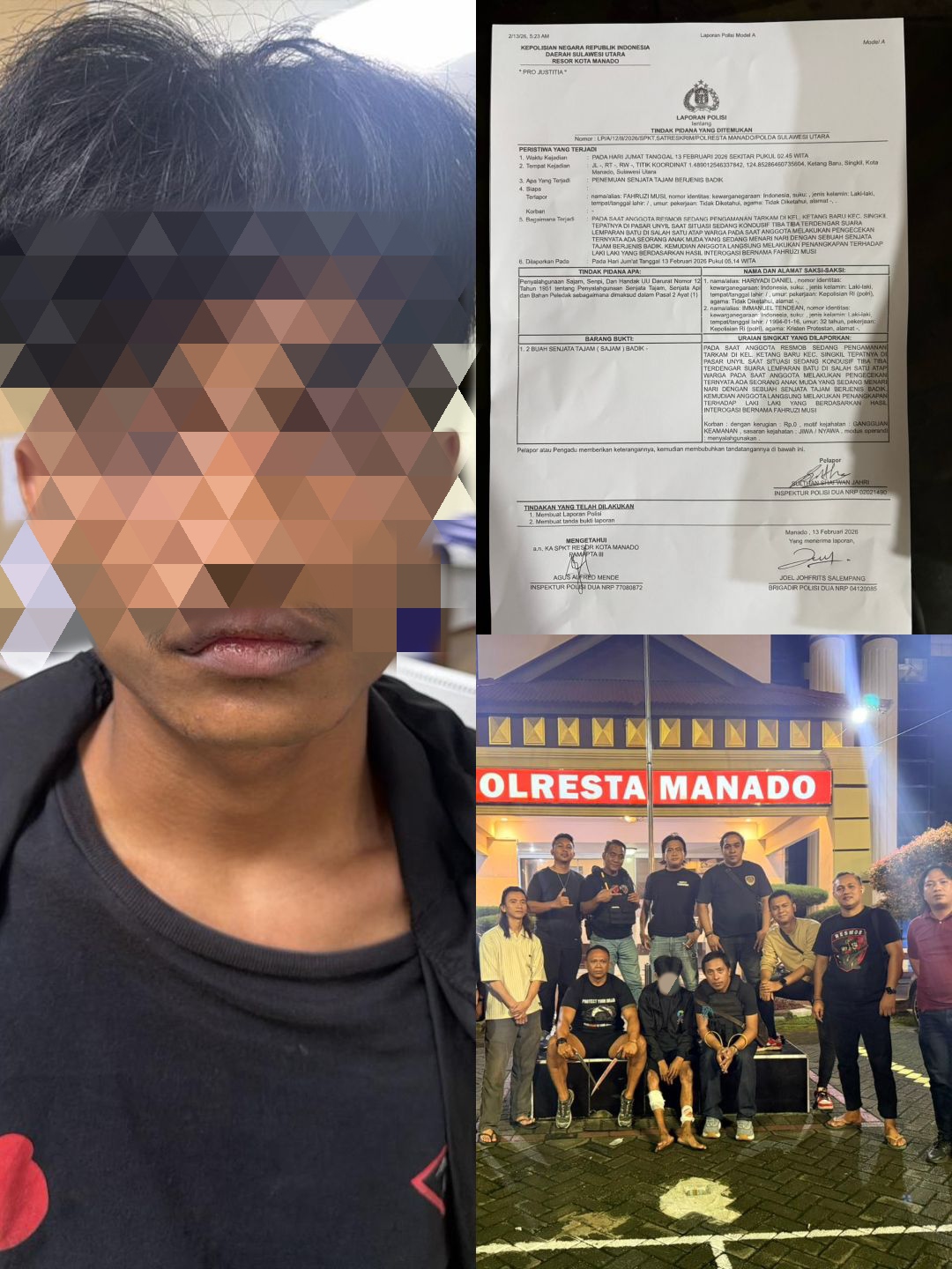 Penangkapan berawal saat Tim Alfa dan Tim Delta bersama Sat Intelkam Polresta Manado tengah melaksanakan patroli rutin di wilayah Singkil untuk menjaga kondusivitas wilayah.