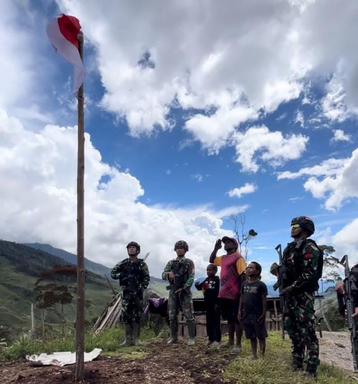 “Masih dalam suasana kegembiraan dalam rangka menyambut HUT RI ke-78 tahun, saya menghimbau kepada jajaran pos-pos satgas untuk menebarkan semangat kemerdekaan serta persatuan dan kesatuan. Semoga dengan pendekatan yang humanis dapat menyentuh hati rakyat untuk lebih cinta terhadap NKRI.” Tutur Dansatgas Letkol Inf Madiyan Surya, S.Hub.Int., M.Han.