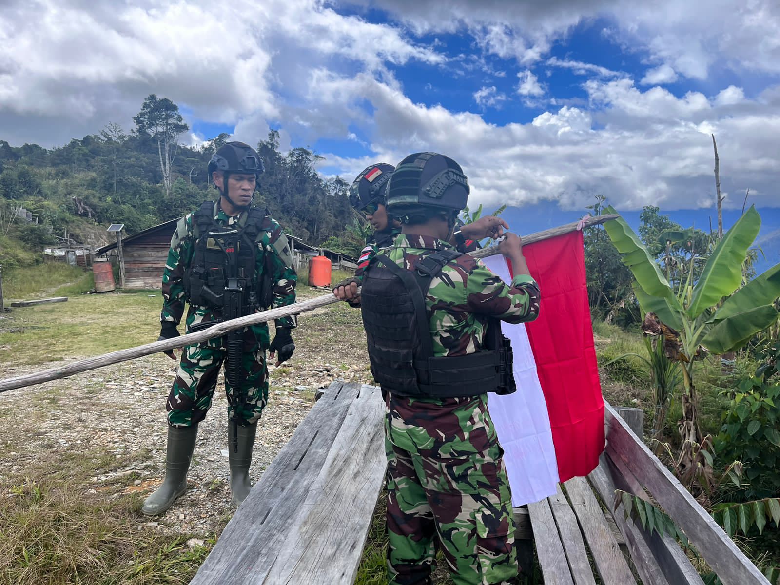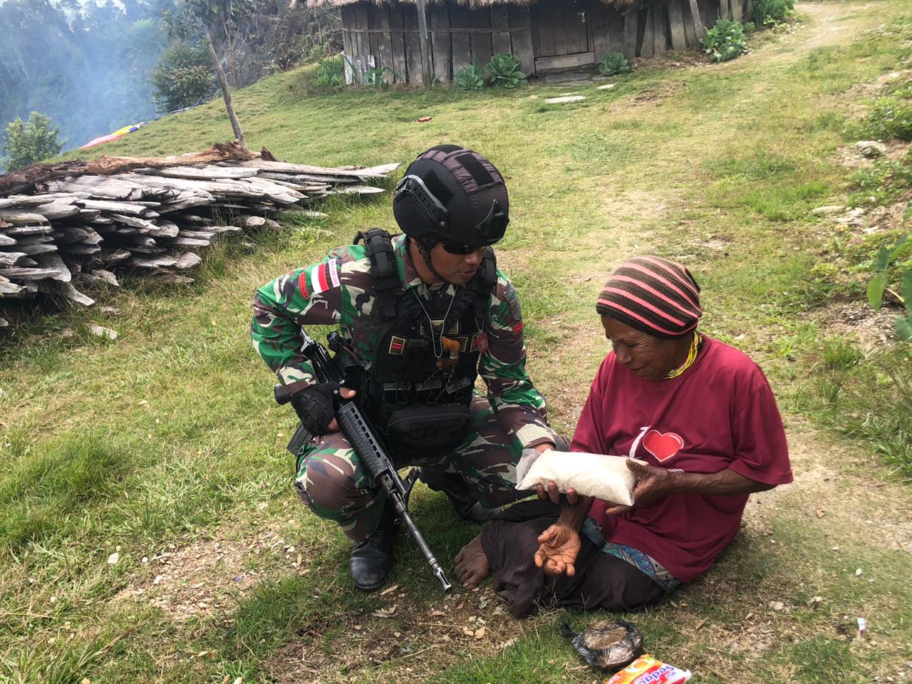 Sebanyak 10 orang anggota satgas yang dipimpin Serka Afdal berkeliling Kampung Puncak Senyum di Distrik Irimuli untuk mengunjungi beberapa rumah dan honai untuk melihat keadaan warga. Berbekal sargal dan bendera merah putih, anggota satgaspun mulai berjalan.