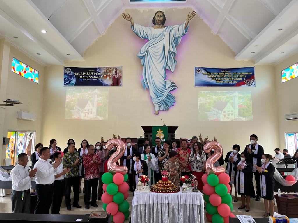 Pilarportal.com – Manado – Wali Kota Manado, Andrei Angouw, Wakil Wali Kota Manado, dr. Richard Sualang bersama Sekretaris TP-PKK Manado, dr. Merry Sualang-Mawardi, Minggu (13/11/2022) menghadiri Ibadah Syukur Hari Ulang Tahun ke-22 Jemaat GMIM Sumber Berkat, Malalayang, Wilayah Manado Malalayang.