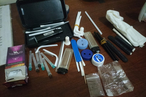 Selanjutnya, petugas memeriksa bagasi sepeda motor pelaku dan menemukan satu buah kotak warna hitam berisi satu paket kecil sabu beserta sejumlah alat penghisap sabu.