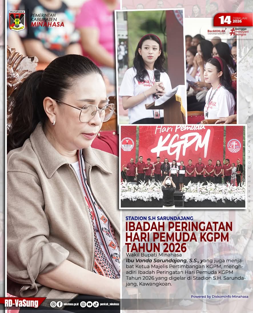 Wakil Bupati Minahasa yang juga sebagai Ketua Majelis Pertimbangan KGPM Pnt. Vanda Sarundajang, SS dalam sambutan mengatakan, Dalam ibadah syukur hari pemuda KGPM Tahun 2026 dengan suasana iman, kebersamaan dan sukacita, atas nama Pribadi, Keluarga dan Pemerintah Kabupaten Minahasa, “Saya menyampaikan selamat memperingati hari pemuda KGPM. Momen ini bukan sekedar perayaan rutin, tetapi merupakan panggilan untuk memperteguh komitmen iman dan tanggung jawab sejarah kita sebagai generasi penerus.