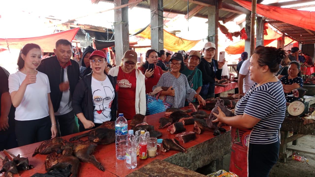 Kunjungan ini untuk menyapa masyarakat, serta bercengkrama lebih dekat dengan para pedagang dan pembeli di Pasar Langowan tersebut.