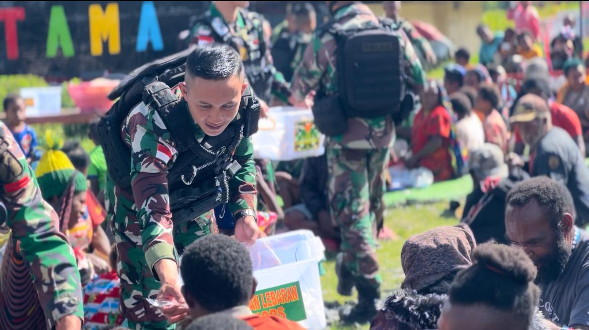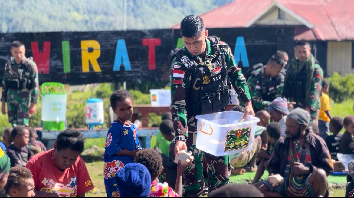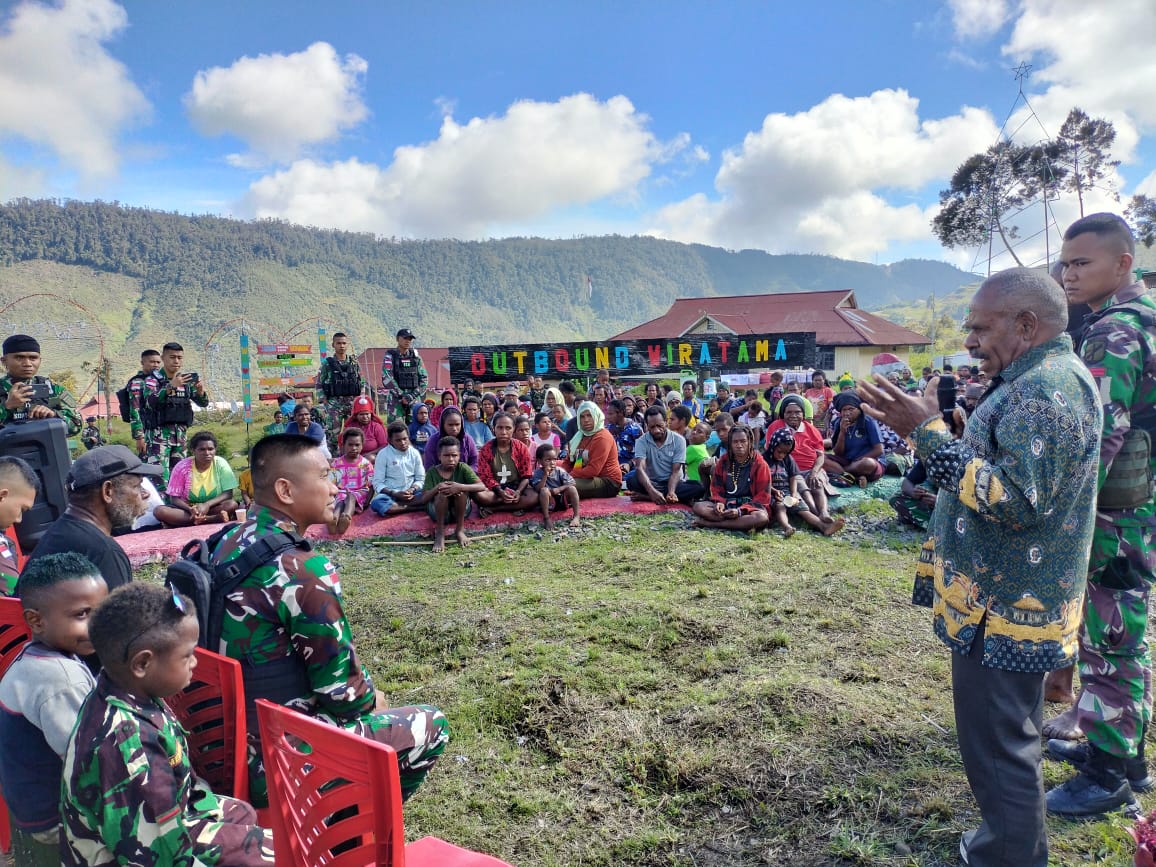 Pilarportal.com – Papua – Kamis pagi yang cerah di Distrik Pagaleme nampak beberapa masyarakat dari kampung-kampung sekitar pos Kotis/Kotabaru Satgas Pamtas RI-PNG Kewilayahan Yonif 712/Wiratama berkumpul di taman Outbound Wiratama untuk mengikuti acara perpisahan dengan anggota satgas, Kamis (14/12/2023).