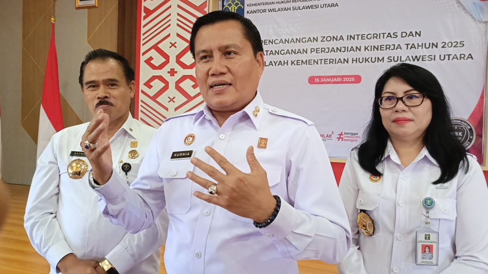 Pilarportal.com, Manado – Pencanangan Zona Integritas dan Penandatanganan Perjanjian Kinerja Tahun 2025 Kantor Wilayah Kementerian Hukum Sulawesi Utara, di Aula Mapalus Kanwilkum Sulut, Rabu (15/1/2025).