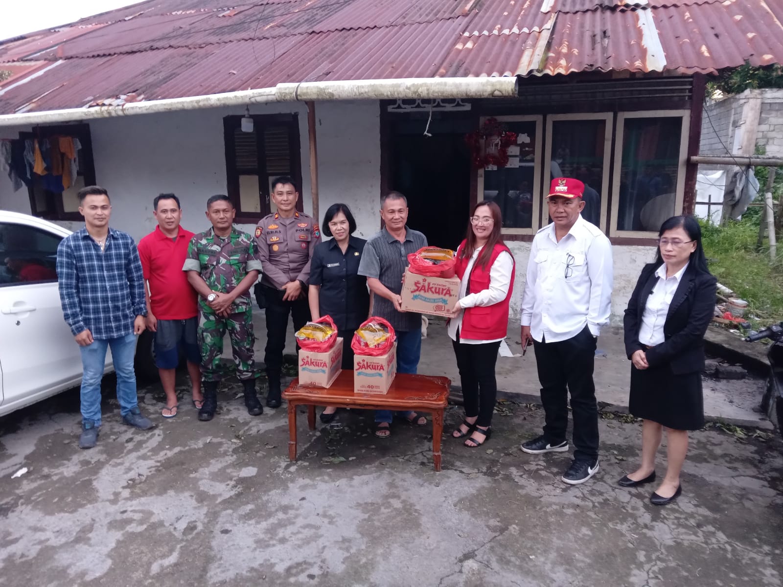 “Bantuan Sosial berupa Sembako Dinas Sosial berikan kepada keluarga yang rumahnya rusak akibat kejadian ini.