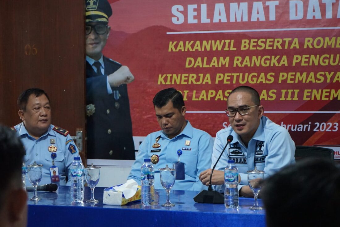 Kakanwil juga mengunjungi setiap kamar hunian dan melakukan perbincangan dengan para warga binaan, terkait pelayanan yang di berikan oleh Lapas Enemawira. Di akhir kunjungannya, Kakanwil memberikan arahan serta penguatan kepada para pegawai yang bertugas di Lapas tersebut. Kakanwil mengingatkan untuk bertugas secara profesional, selalu mengedepankan pelayanan, dan tetap semangat dalam menjalankan tugas sehari-hari.