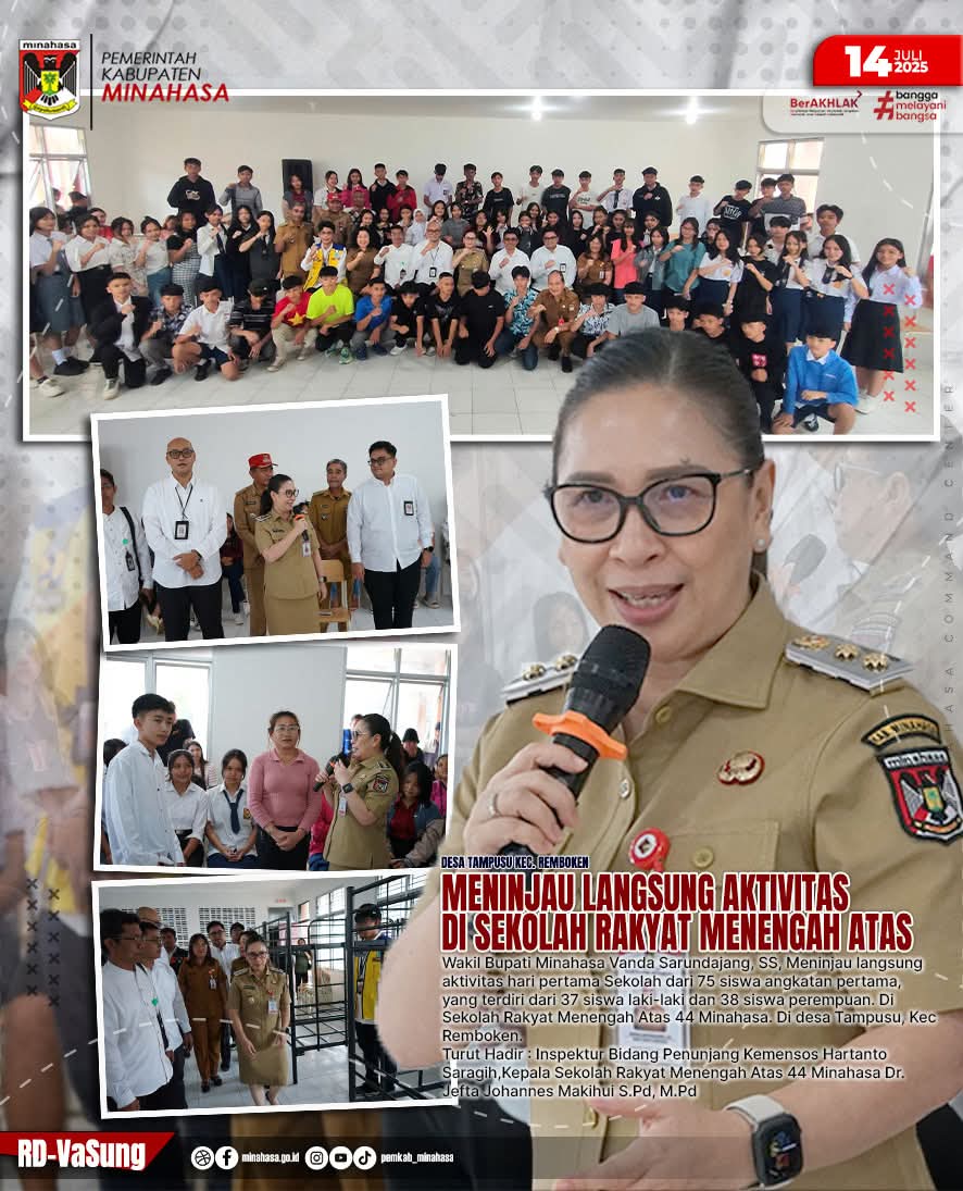 Pilarpoetal.com,Minahasa – Wakil Bupati Minahasa, Vanda Sarundajang, SS, melakukan kunjungan ke Sekolah Rakyat Menengah Atas (SRMA) yang berlokasi di Desa Tampusu, Kecamatan Remboken, pada Senin (14/7/2025).