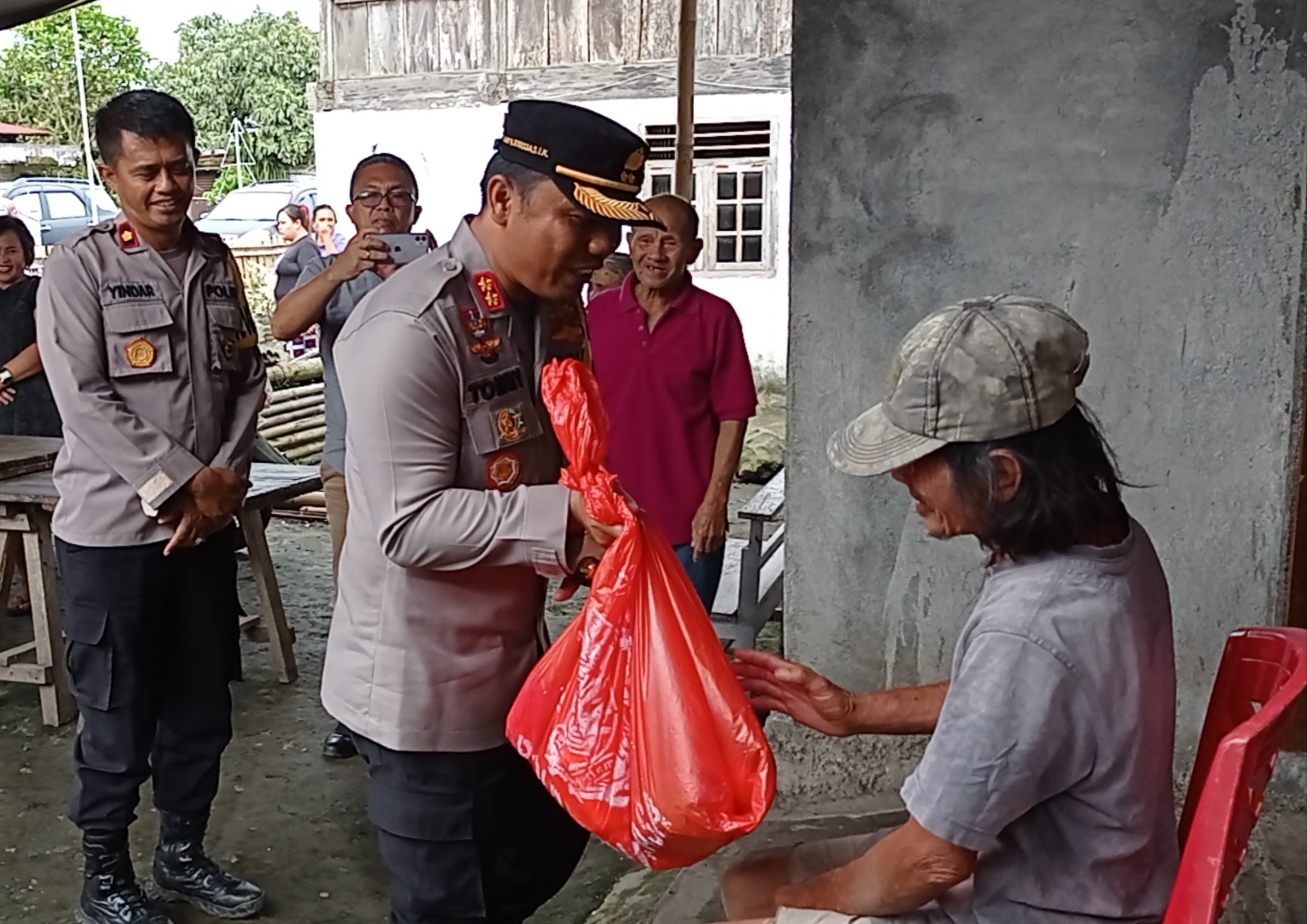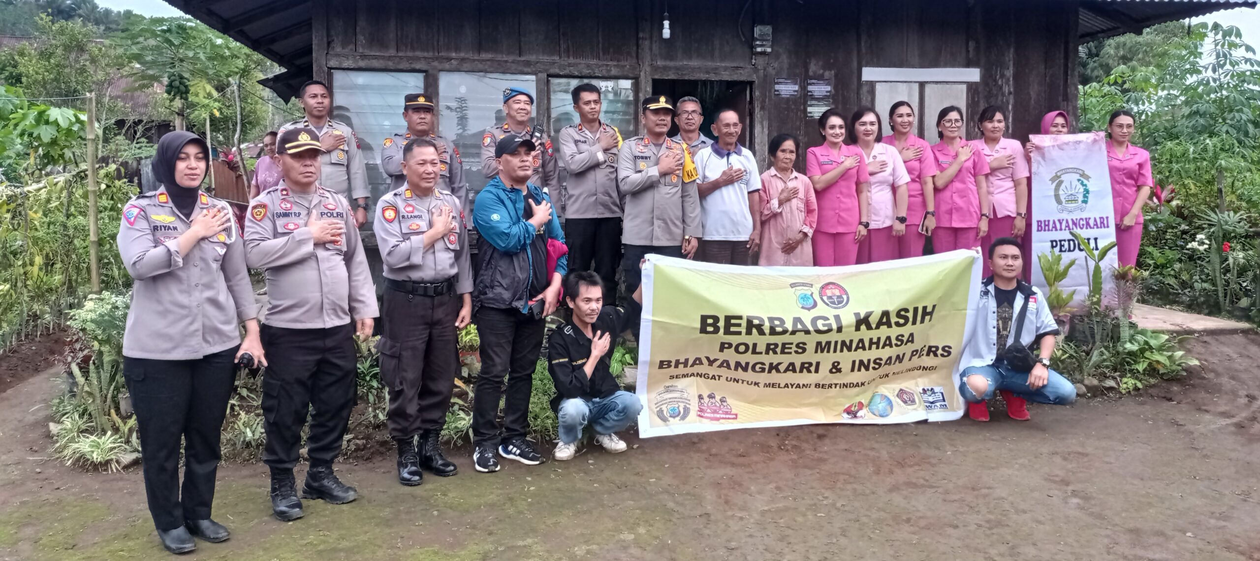 Kapolres AKBP Tommy Bambang Souissa yang turun langsung memberikan bantuan tersebut didampingi Wakapolres Kompol Yindar Sapangallo S.Sos, Ketua Cabang Bhayangkari Melda Souissa, Para Pejabat Utama Polres, Ibu Ibu Bhayangkari Dan Insan Pers Minahasa.