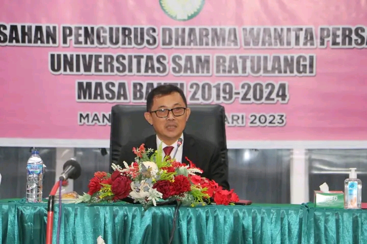 Rektor Unsrat Prof. Sompie pada sambutannya mengatakan,”Kontribusi para istri yang tergabung dalam Dharma Wanita Persatuan sangat banyak manfaatnya.”ucap Rektor Sompie