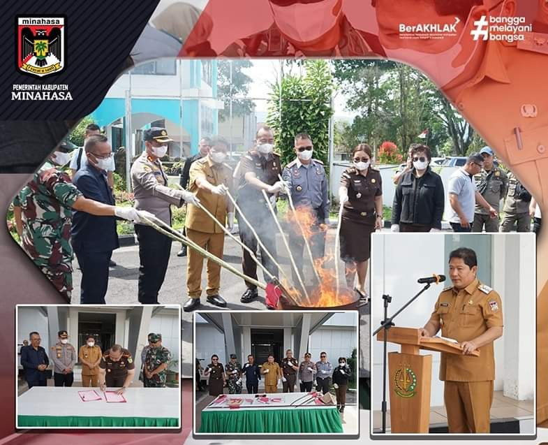 Pilarportal.com,Minahasa – Penjabat Bupati Minahasa Dr. Jemmy Stani Kumendong M.Si, menghadiri kegiatan pemusnahan barang bukti tindak pidana umum telah berkekuatan hukum tetap (Inkracht) pada Kejaksaan Negeri Minahasa yang dilaksanakan di halaman kantor Kejari Minahasa, Selasa (16/07/2024).