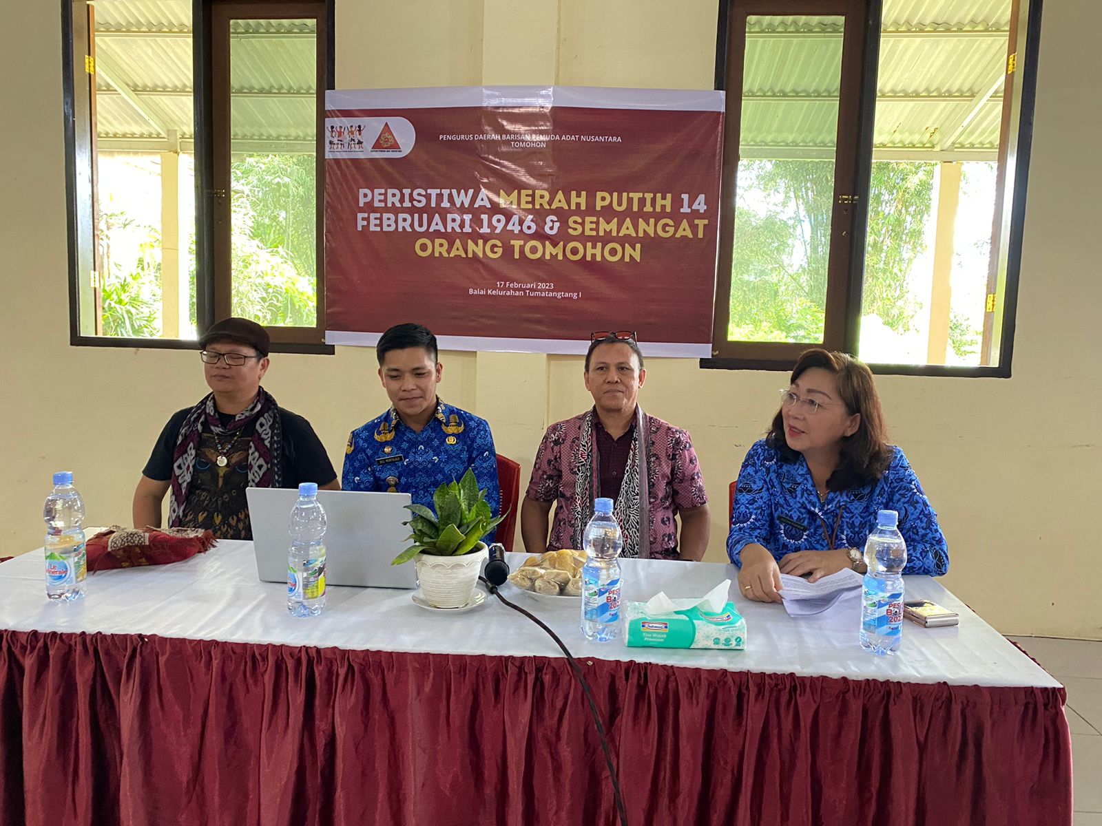Pilarportal.com,Tomohon – Diskusi bertajuk “Peristiwa Merah Putih 14 Februari 1946 dan Semangat Orang Tomohon” berlangsung di BPU Kantor Kelurahan Tumatangtang Satu, Kecamatan Tomohon Selatan, Jumat (17/02/2023)