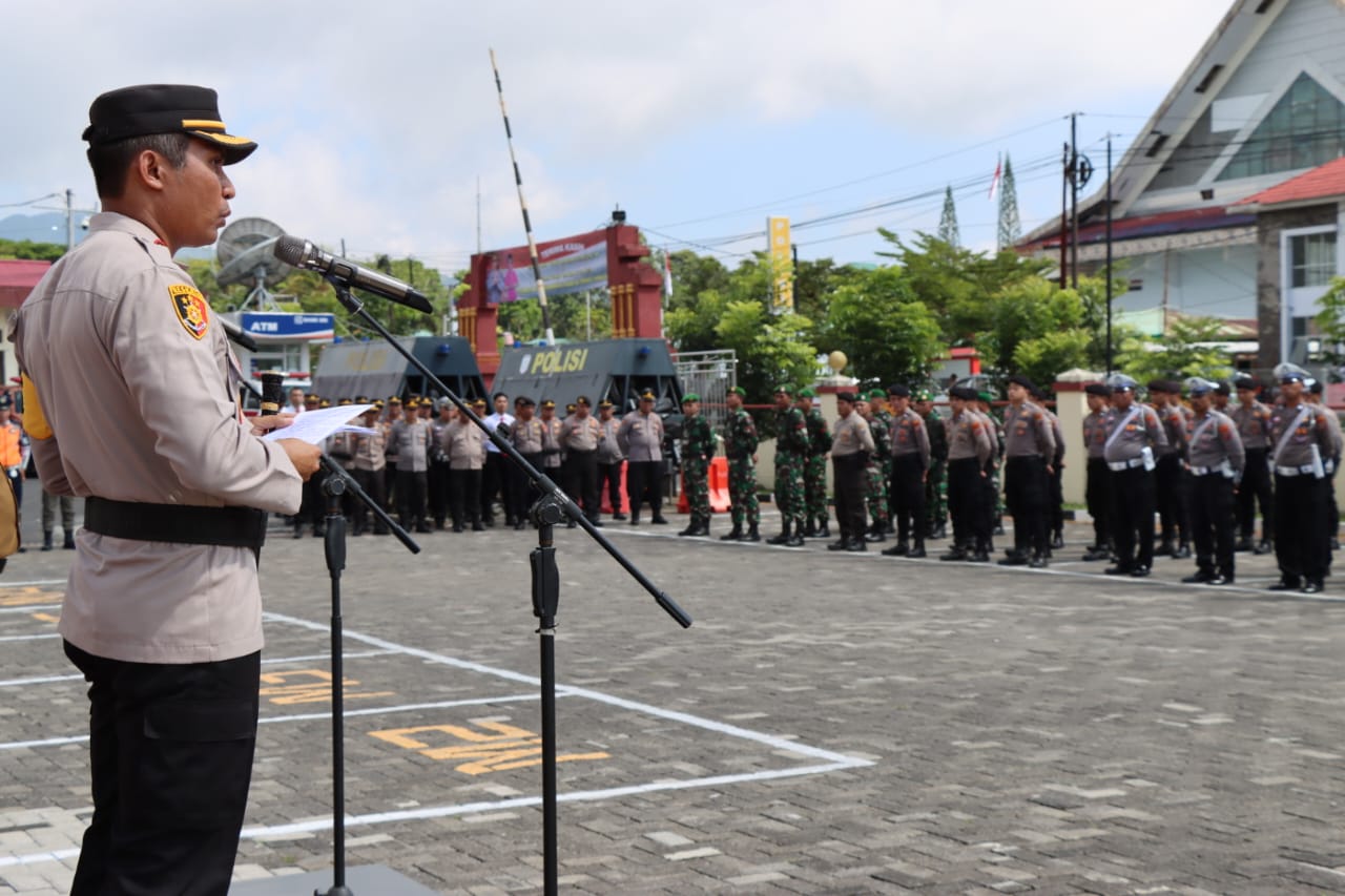 Kapolres Minahasa AKBP. Ketut Suryana, S.I.K, S.H, M.M. membacakan Instruksi Kapolri Komjend Listyo Sigit Prabowo apel gelar pasukan merupakan bentuk pengecekan akhir kesiapan pelaksanaan operasi katupat 2023.