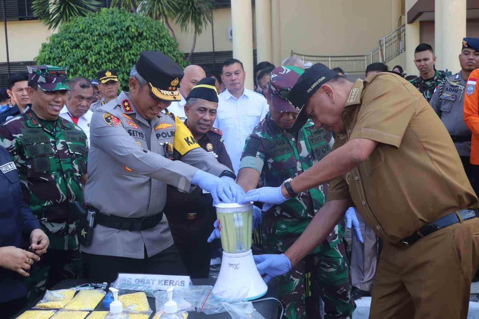 Pemusnahan barang bukti dilakukan secara simbolis oleh Gubernur Sulut Olly Dondokambey dan Kapolda Sulut Irjen Pol Setyo Budiyanto beserta Forkopimda lainnya yang hadir.