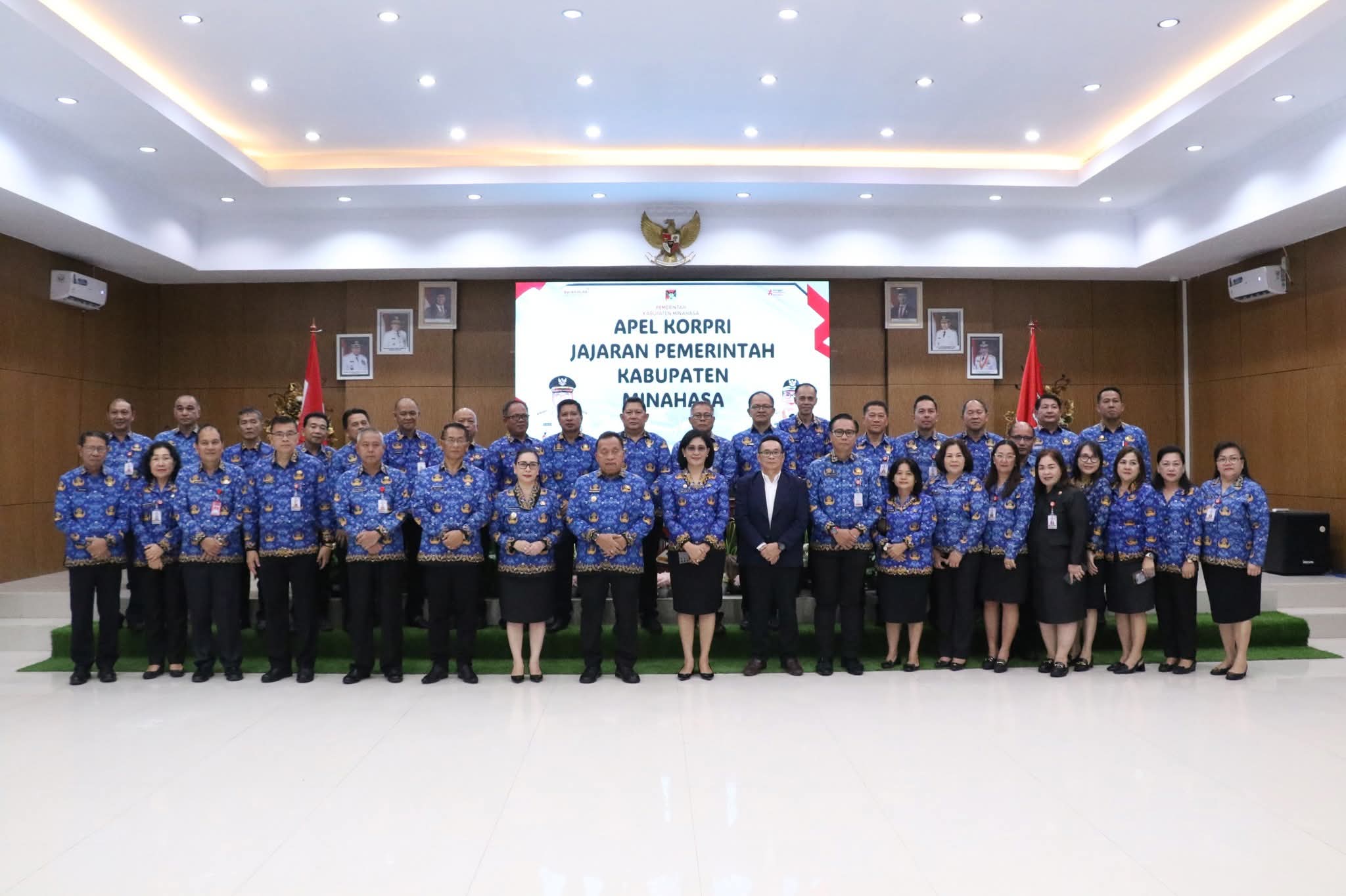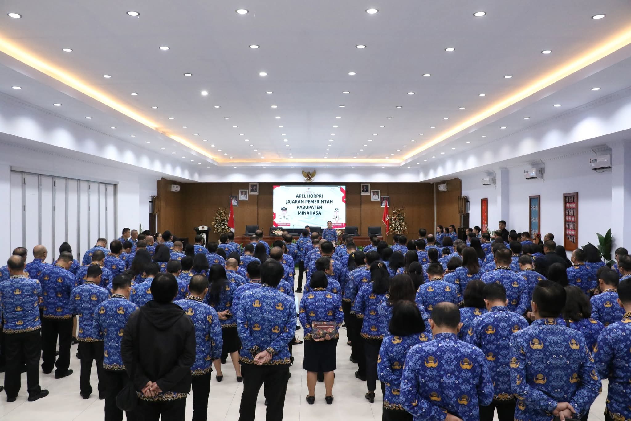 Pilarportal.com,Minahasa – Apel Korps Pegawai Republik Indonesia (KORPRI) Pemerintah Kabupaten Minahasa yang digelar berlangsung Ruang Sidang Kantor Bupati Minahasa. Selasa (17/6/2025).