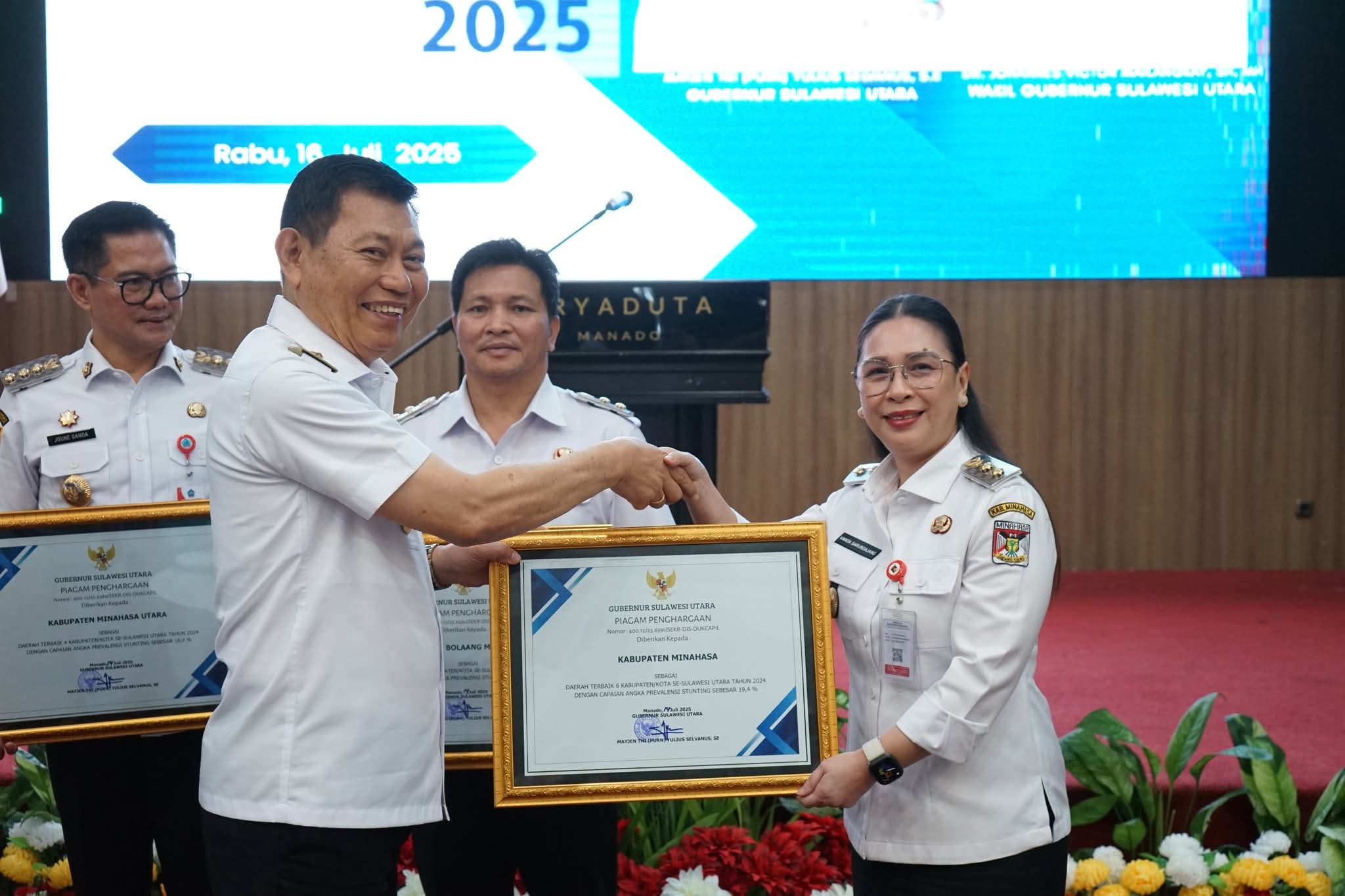 Dalam kegiatan yang dibuka secara resmi oleh Wakil Gubernur Sulawesi Utara Dr. J. Victor Mailangkay, SH, MH, Pemerintah Kabupaten Minahasa menerima piagam penghargaan sebagai daerah terbaik ke-6 se-Sulawesi Utara dalam penanganan stunting, dengan capaian angka prevalensi stunting sebesar 19,4, yang lebih rendah dari rata-rata capaian angka nasional.
