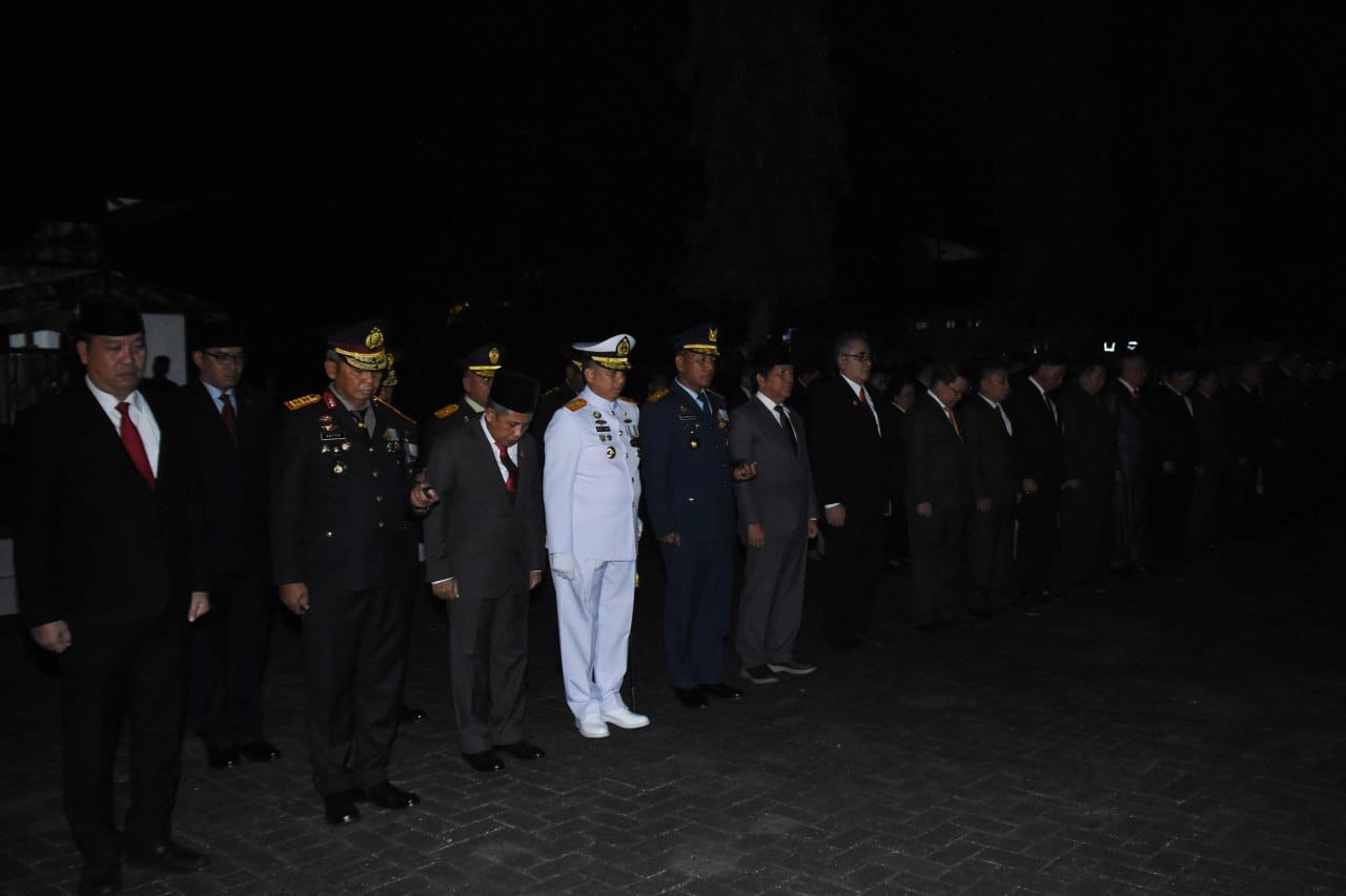 Pelaksanaan upacara kehormatan ditandai dengan penyalaan api obor dan doa serta mengheningkan cipta.