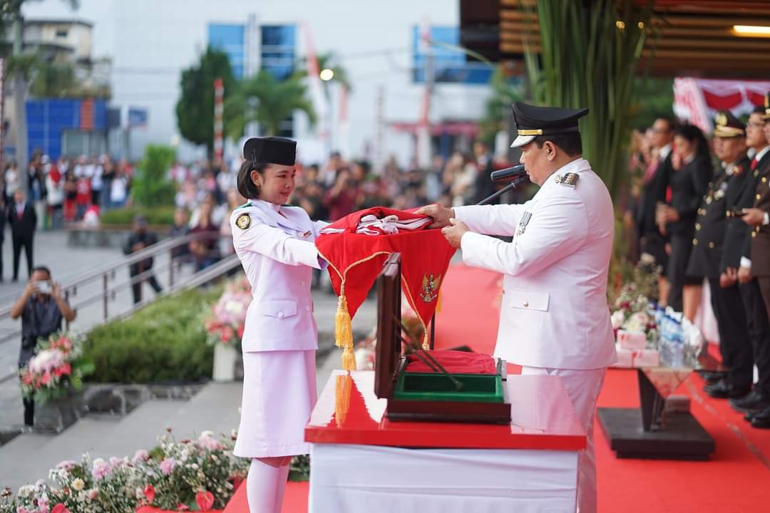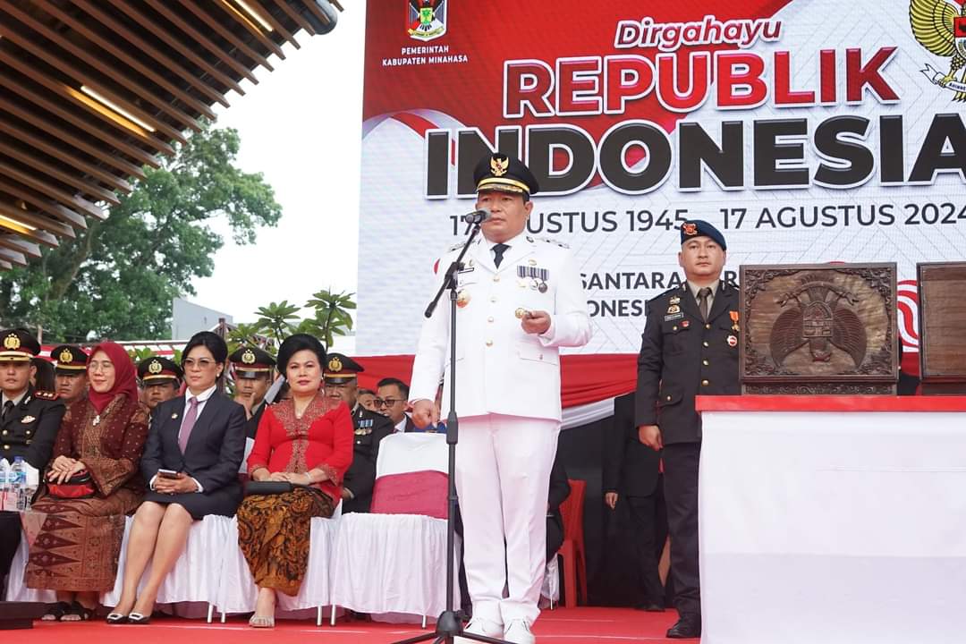 Pilarportal.com,Minahasa – Bupati Minahasa Dr. Jemmy Stani Kumendong M.Si, menjadi Inspektur Upacara (Irup) pada upacara pengibaran Bendera Merah Putih dalam rangka Hari Ulang Tahun (HUT) Proklamasi Republik Indonesia (RI) ke -79 bertempat di Lapangan Sam Ratulangi Tondano, Sabtu (17/8/24) pagi.