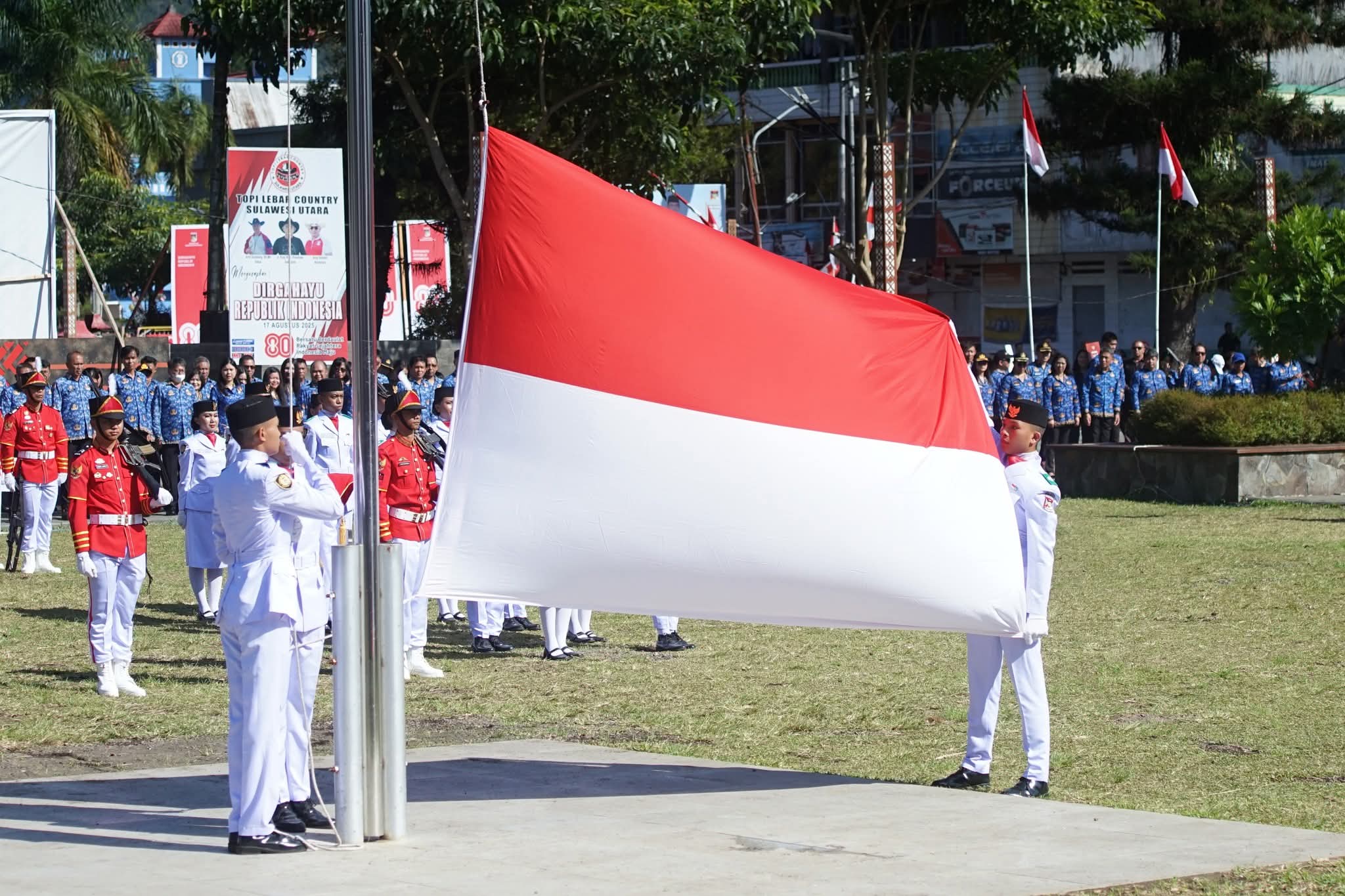 Momen sakral detik-detik Proklamasi ditandai dengan pengibaran Sang Saka Merah Putih oleh Pasukan Pengibar Bendera Pusaka (Paskibraka) Kabupaten Minahasa, yang terdiri dari perwakilan pelajar SMA bersama unsur TNI dan Polri. Peltu Lodik B.M., Bati Komsos Kodim Minahasa, bertindak sebagai Komandan Paskibraka.