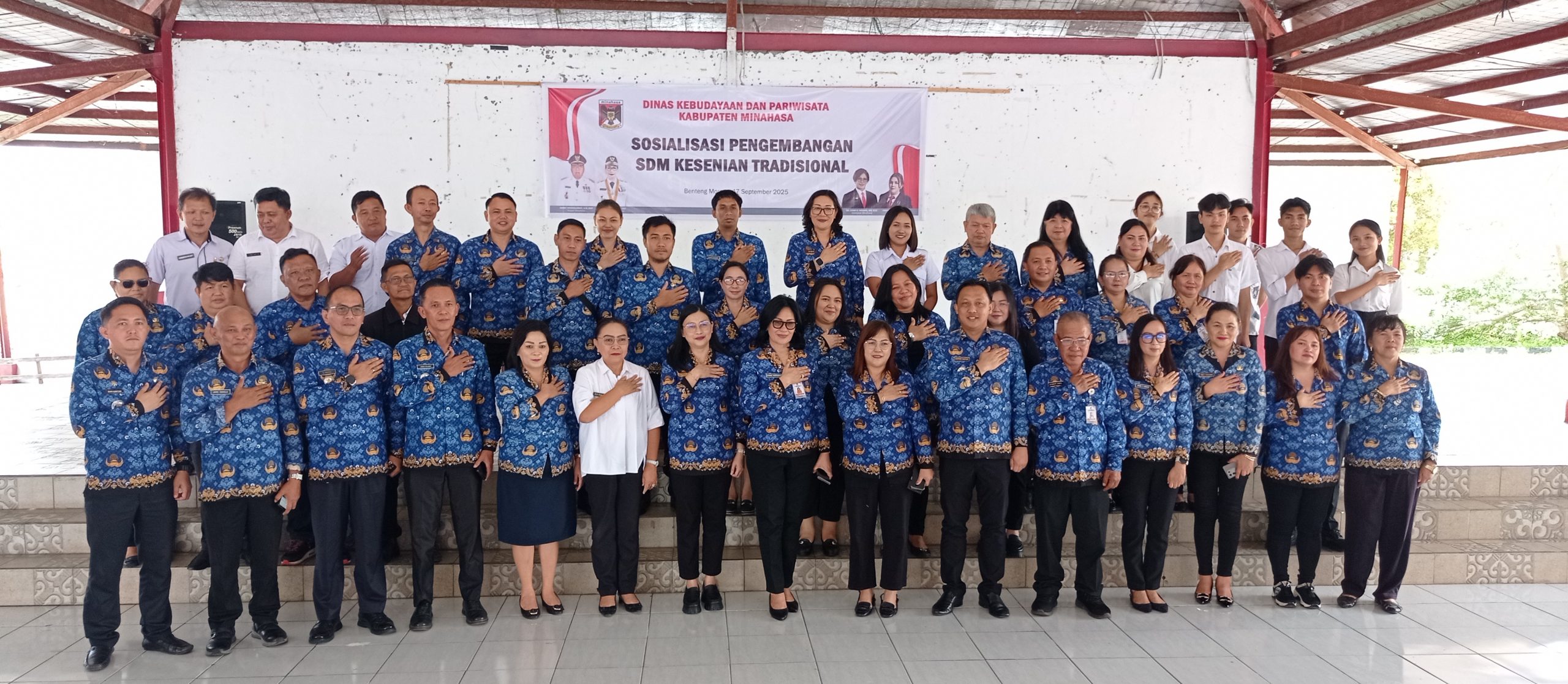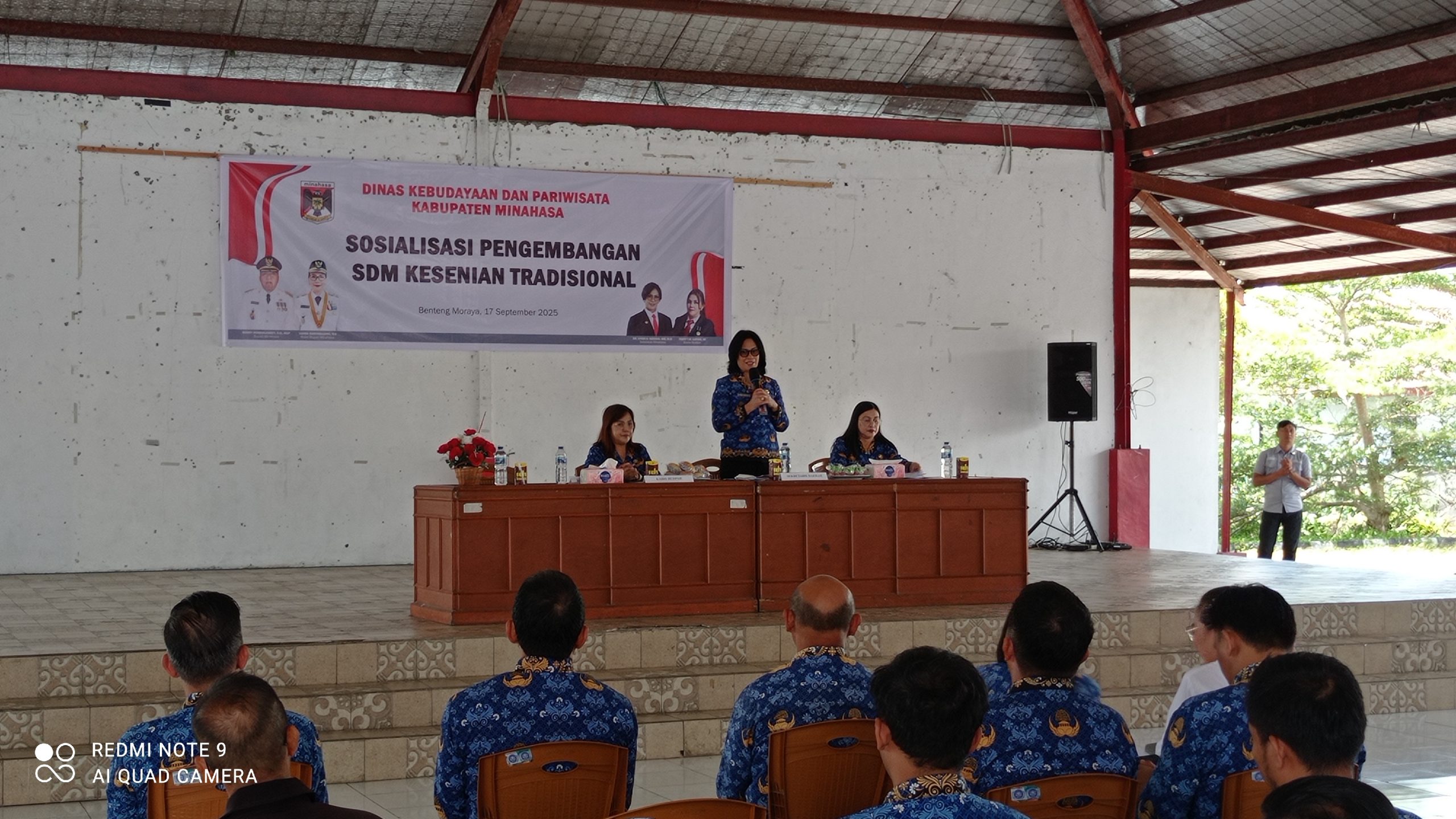 Pilarportal.com,Minahasa – 17 September 2025 – Pemerintah Kabupaten Minahasa melalui Dinas Kebudayaan dan Pariwisata menggelar Sosialisasi Pengembangan Sumber Daya Manusia Kesenian Tradisional. Acara yang berlangsung di Benteng Moraya, Tondano, ini dihadiri oleh Sekretaris Daerah Kabupaten Minahasa, Dr. Lynda D. Watania, MM, M.Si, Plt. Kepala Dinas Kebudayaan dan Pariwisata, Fenty T.W. Lapian, SE, para Kepala Bidang, Kepala Seksi Kesejahteraan Sosial, serta ASN pengelola pendataan sanggar dan grup kesenian dari seluruh kecamatan di Kabupaten Minahasa.