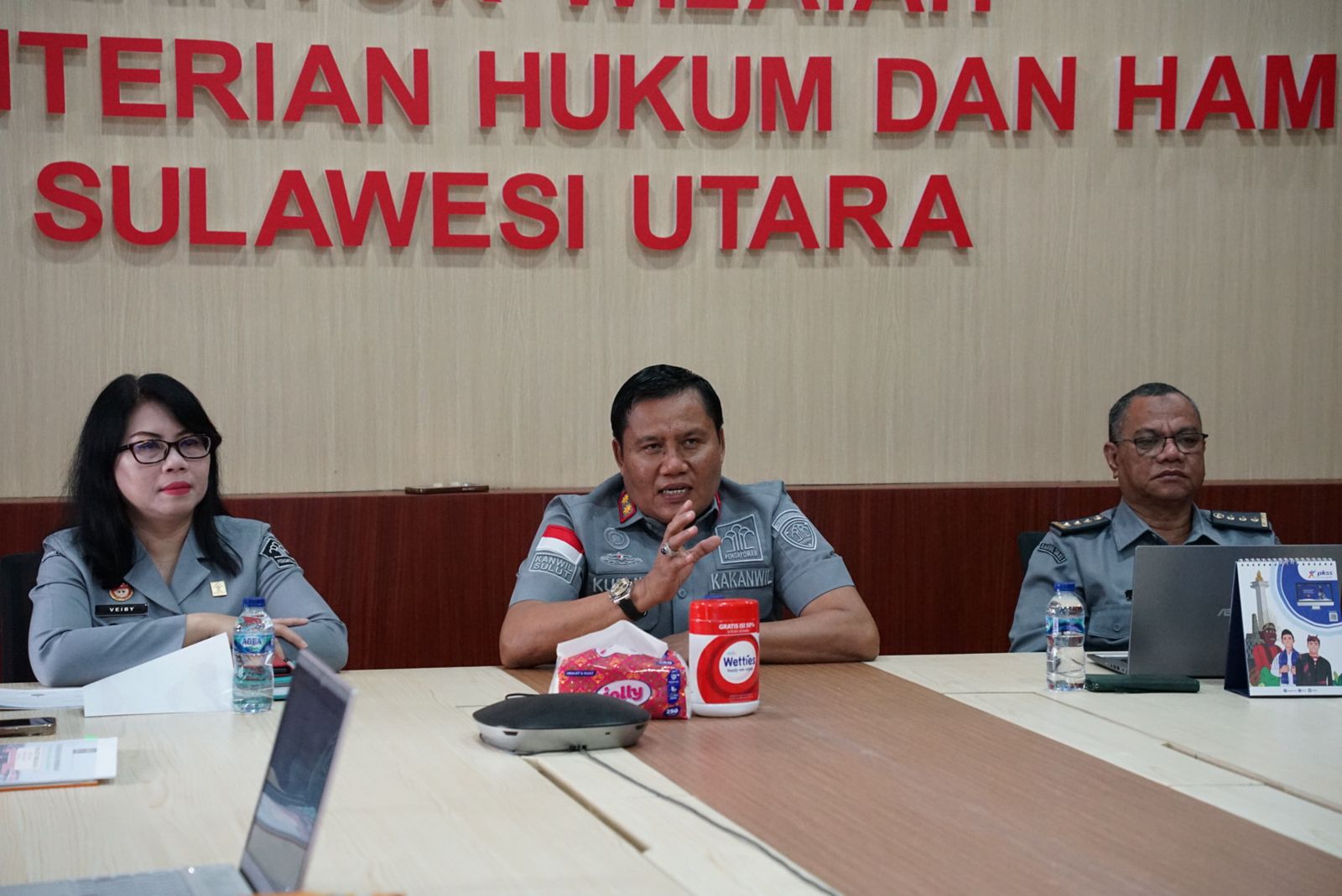 Kepala Kantor Wilayah Kementerian Hukum Sulawesi Utara Kurniaman Telaumbanua yang didampingi Kepala Divisi Peraturan Perundang-Undangan dan Pembinaan Hukum Veiby Koloay membuka kegiatan Pendidikan dan Pelatihan Serentak secara virtual yang diikuti sebanyak 143 peserta, Selasa (18/2).