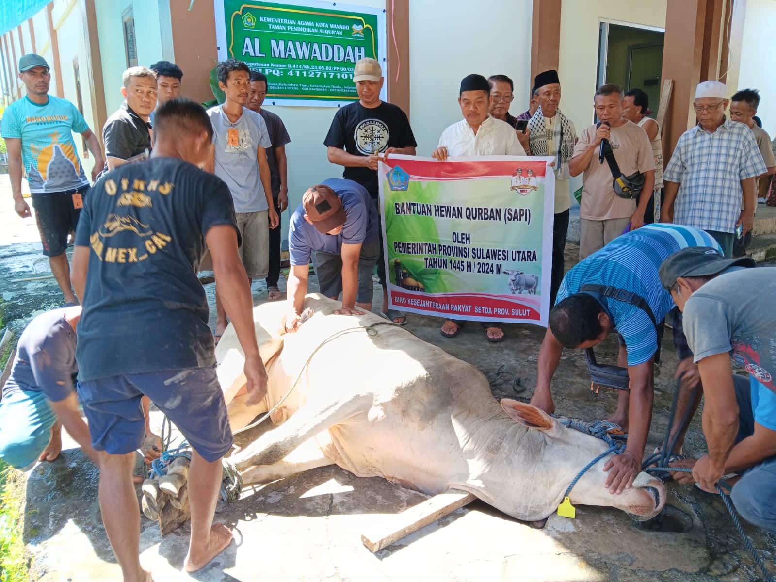 “Alhamdulillah Idul Adha 1445 kali ini, jamaah Masjid Al Mawaddah mampu berkurban sebanyak 5 ekor sapi. Dan juga ada tambahan dari Pemprov Sulut sebanyak 1 ekor sapi, dan dari Hotel Luwansa 1 ekor kambing,” ujar Ketua Panitia Kurban Djuwari Bawon, didampingi Ketua BTM dr. Eko Surachmanto.