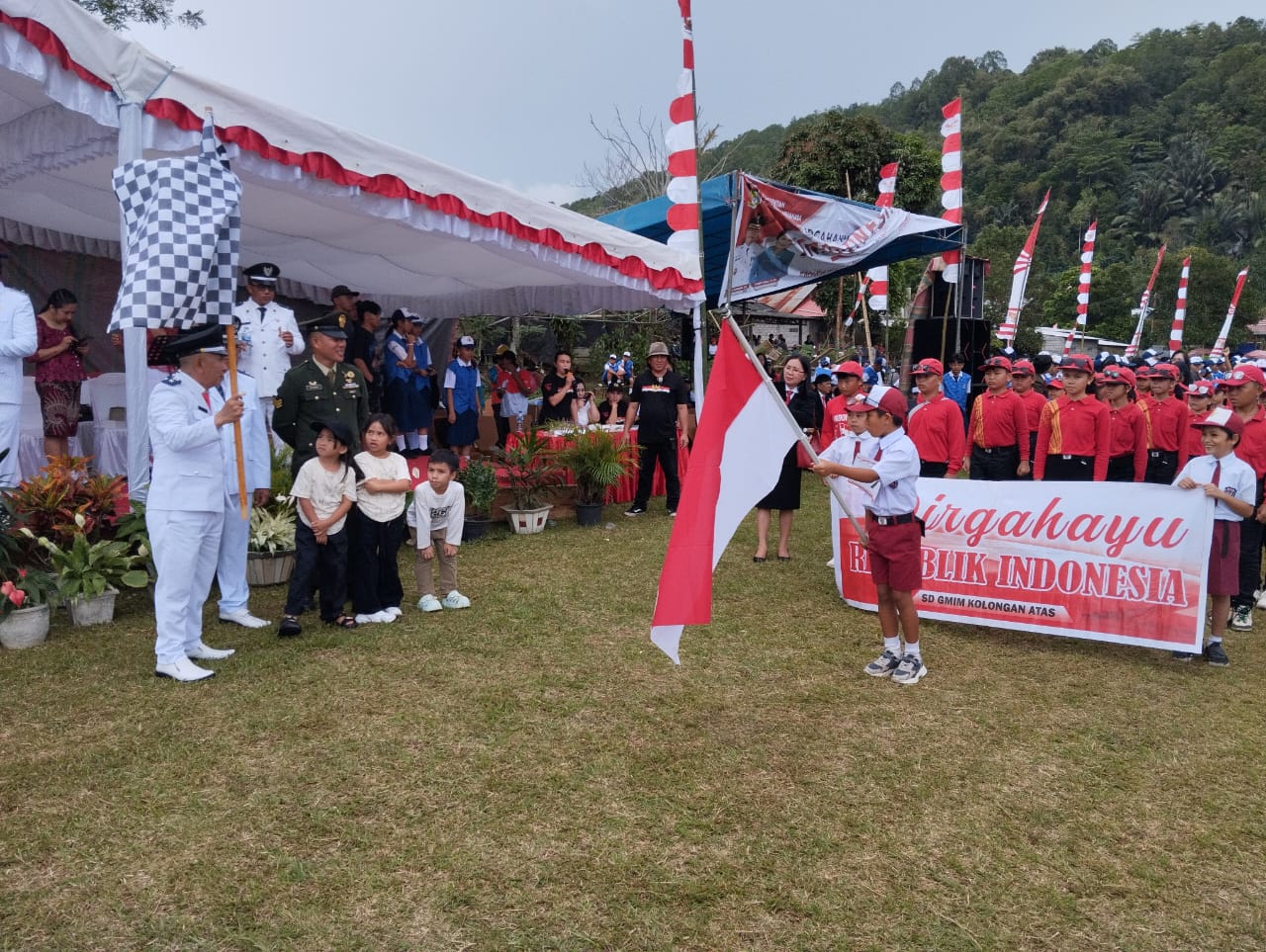 Pilarportal.com,Minahasa – Hukum Tua Desa Kolongan Atas Kabupaten Minahasa, Rudy Tendean menghadiri sekaligus membuka acara gerak jalan tingkat SD Kecamatan Sonder, yang diselenggarakan oleh Pemerintah Kecamatan Sonder dalam rangka memperingati dan memeriahkan Hari Ulang Tahun (HUT) ke -79 Republik Indonesia (RI), di lapangan Desa Leilem Raya. Sabtu (17/8/2024).