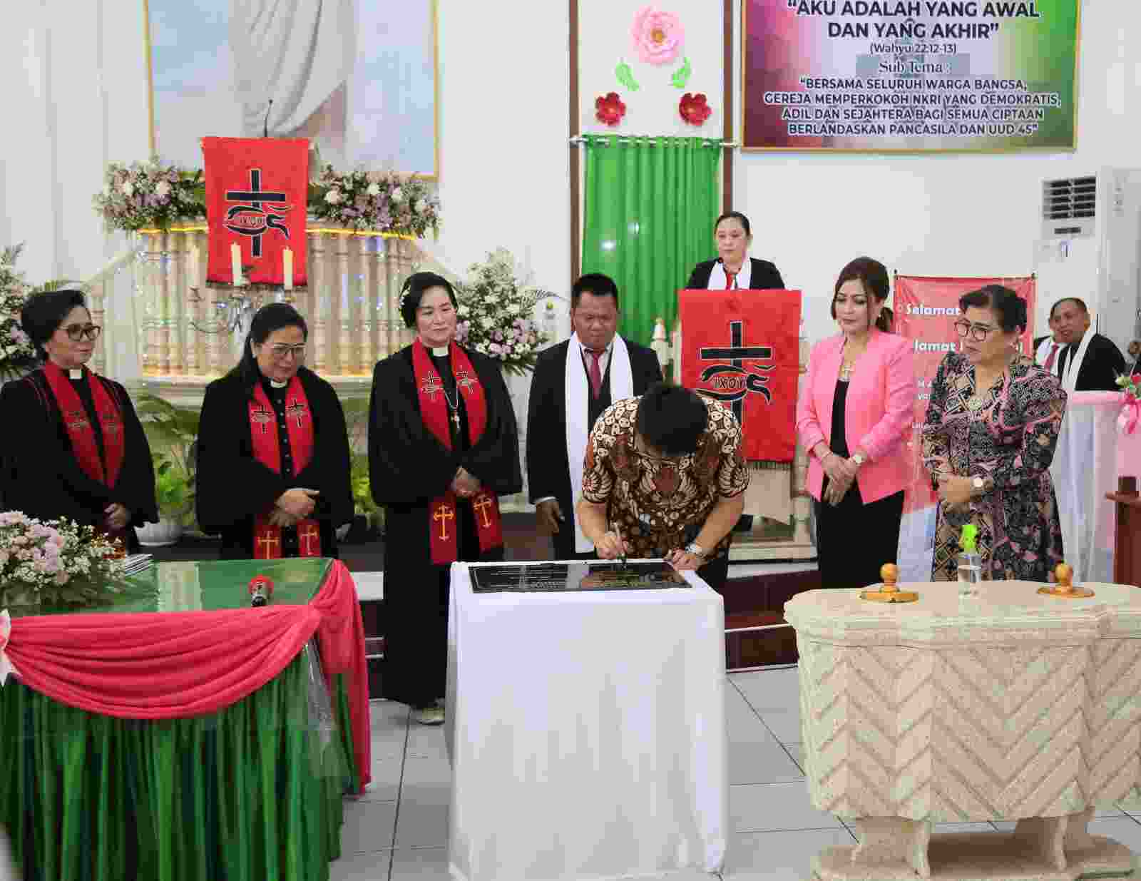 Pilarportal.com — Manado — Wali Kota Manado Andrei Angouw didampingi Ketua TP-PKK Kota Manado Irene Angouw-Pinontoan, menghadiri Ibadah Syukur Hari Ulang Tahun (HUT) ke-57 Jemaat GMIM Abraham Sario Sentra dan Ibadah Syukur Serah Terima Pelayanan Ketua BPMJ GMIM Syaloom Dendengan Dalam, Minggu (19/2).