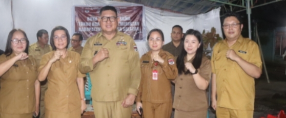 Wakil Bupati Minahasa Selatan didampingi oleh Sekretaris DPRD, Kepala Dinas Perkim, Kepala Dinas PUTR, Kepala Dinas PMPTSP, Kepala Dinas Koperasi dan UKM, Kepala Dinas Lingkungan Hidup, Kepala Dinas Kominfo, Kepala BPBD, Plt. Kepala Dinas Pangan, Kepala Bagian Kesra Setda, Camat Sinonsayang dan para Hukum Tua dan Perangkat Desa se-Kecamatan Sinonsayang. (*/Hanny)