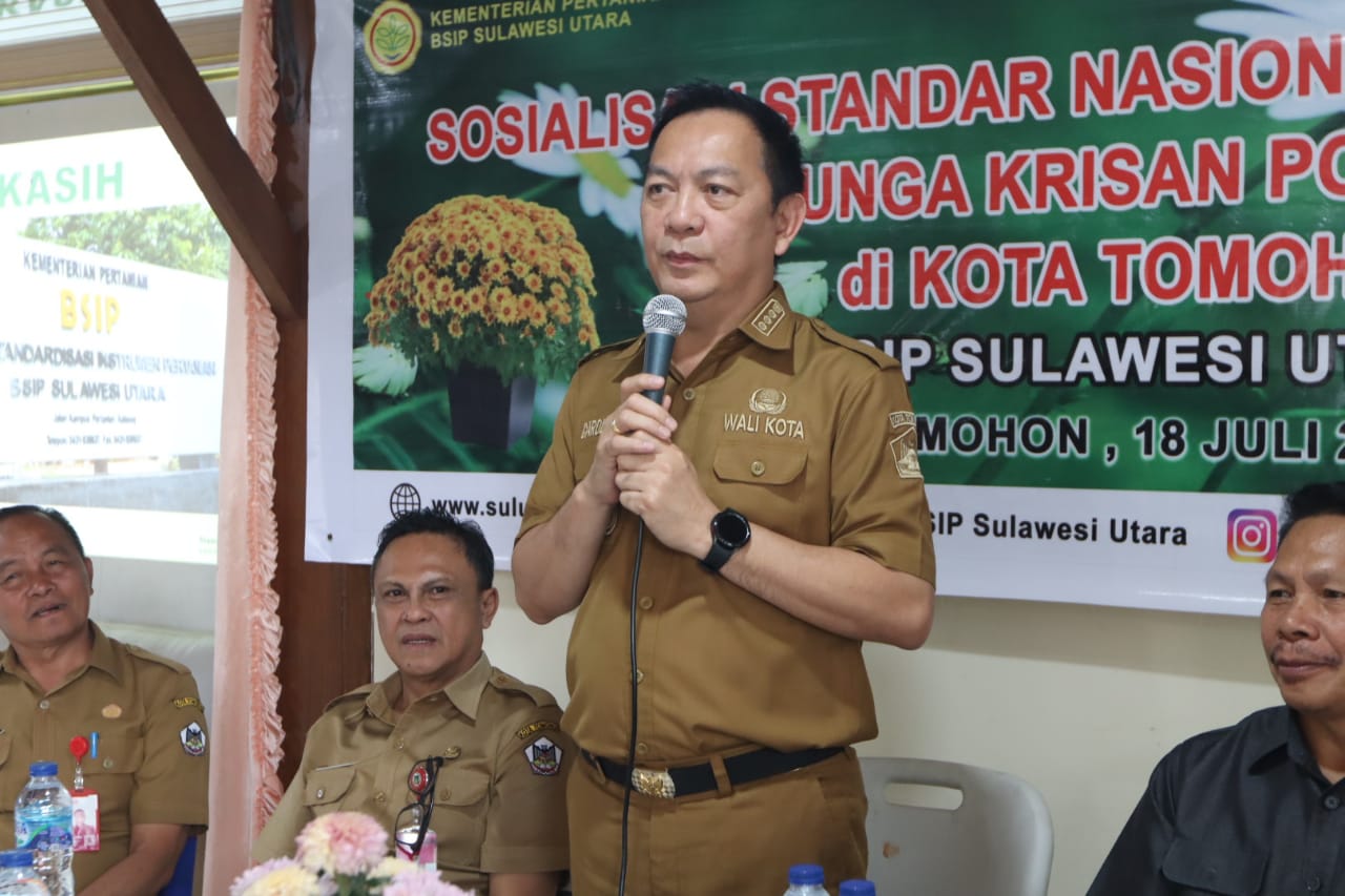 Pilarportal.com, Tomohon – Wali Kota Tomohon Caroll Joram Azarias Senduk, S.H. menghadiri Sosialisasi Standar Nasional Indonesia Bunga Krisan Potong di Kota Tomohon. Dilaksanakan di Kelurahan Kakaskasen Kecamatan Tomohon Utara, Selasa (18/7/2023).