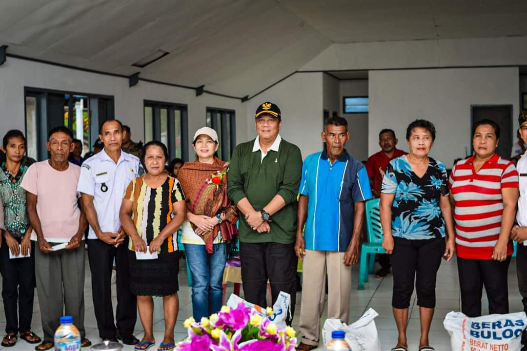 Pj. Bupati Kepulauan Sangihe, Albert Huppy Wounde menyerahkan bantuan rawan pangan bagi masyarakat