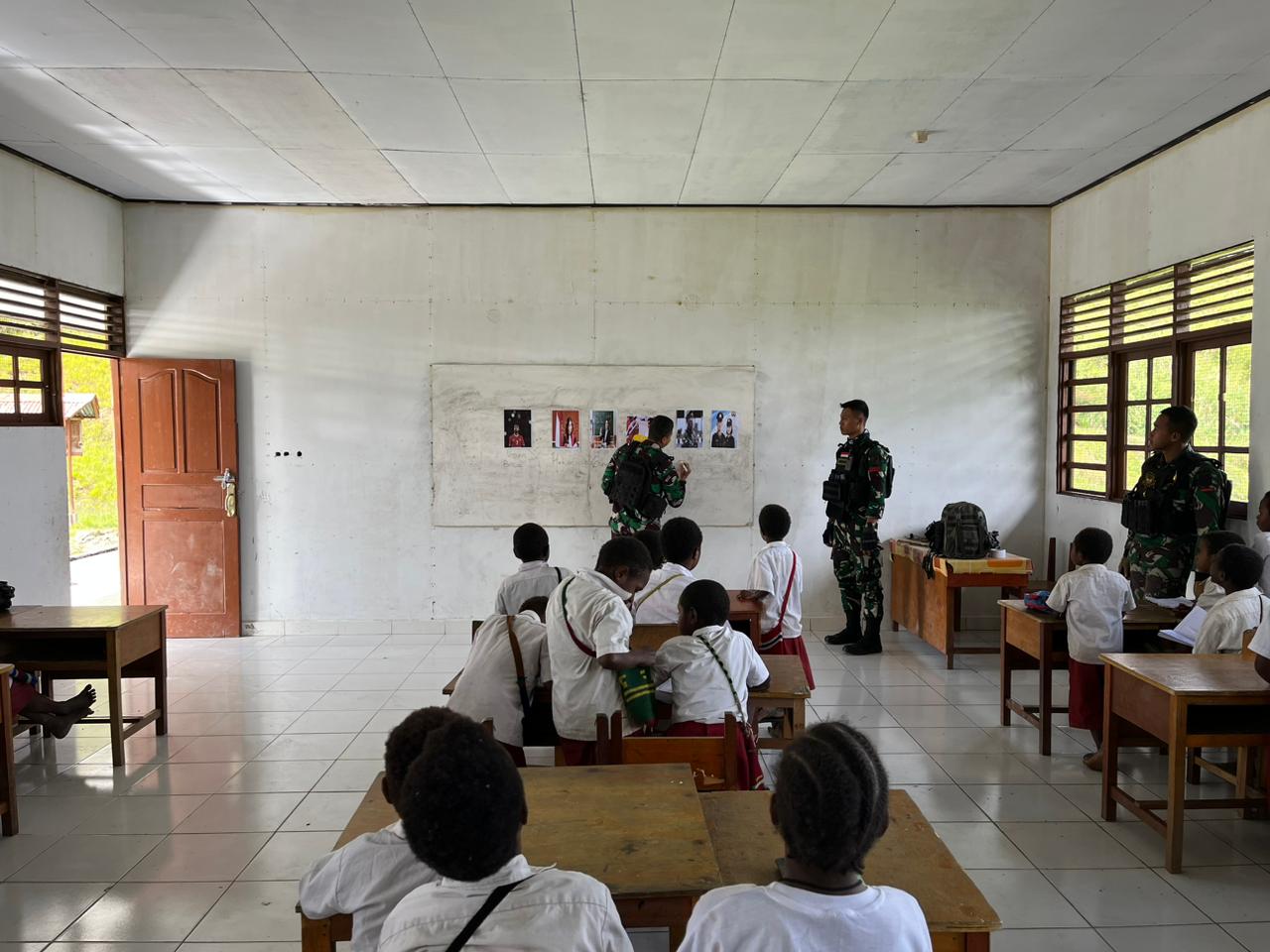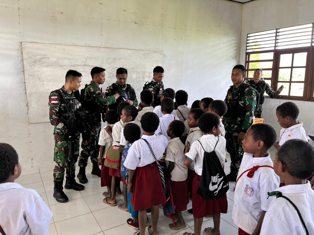 “Kami selaku aparat satgas di daerah Puncak Jaya melakukan kegiatan mengajar di sekolah dasar guna membentuk disiplin sejak dini dan menanamkan kecintaan murid-murid Papua khususnya di sekolah-sekolah. Tujuannya agar menjadi bekal generasi muda Papua dalam membangun Papua lebih maju dimasa depan.” Tutur Dansatgas Letkol Inf Madiyan Surya, S.Hub.Int., M.Han.