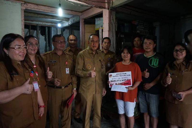 Penyerahan bantuan yang dilakukan langsung oleh Bupati Minahasa, yakni pada keluarga Lalogiroth Tindangen di Tataaran 2 Kecamatan Tondano Selatan, bencana kebakaran, Keluarga Parengkuan Komimbin di Kelurahan Rinegetan Kecamatan Tondano Timur, bencana angin puting beliung, Keluarga Duduong Rumagit Kelurahan Wawalintouan Kecamatan Tondano Barat Bencana angin puting beliung, GMIM kanaan Kulo Kelurahan Wewelen Kecamatan Tondano Barat juga bencana kebakaran.