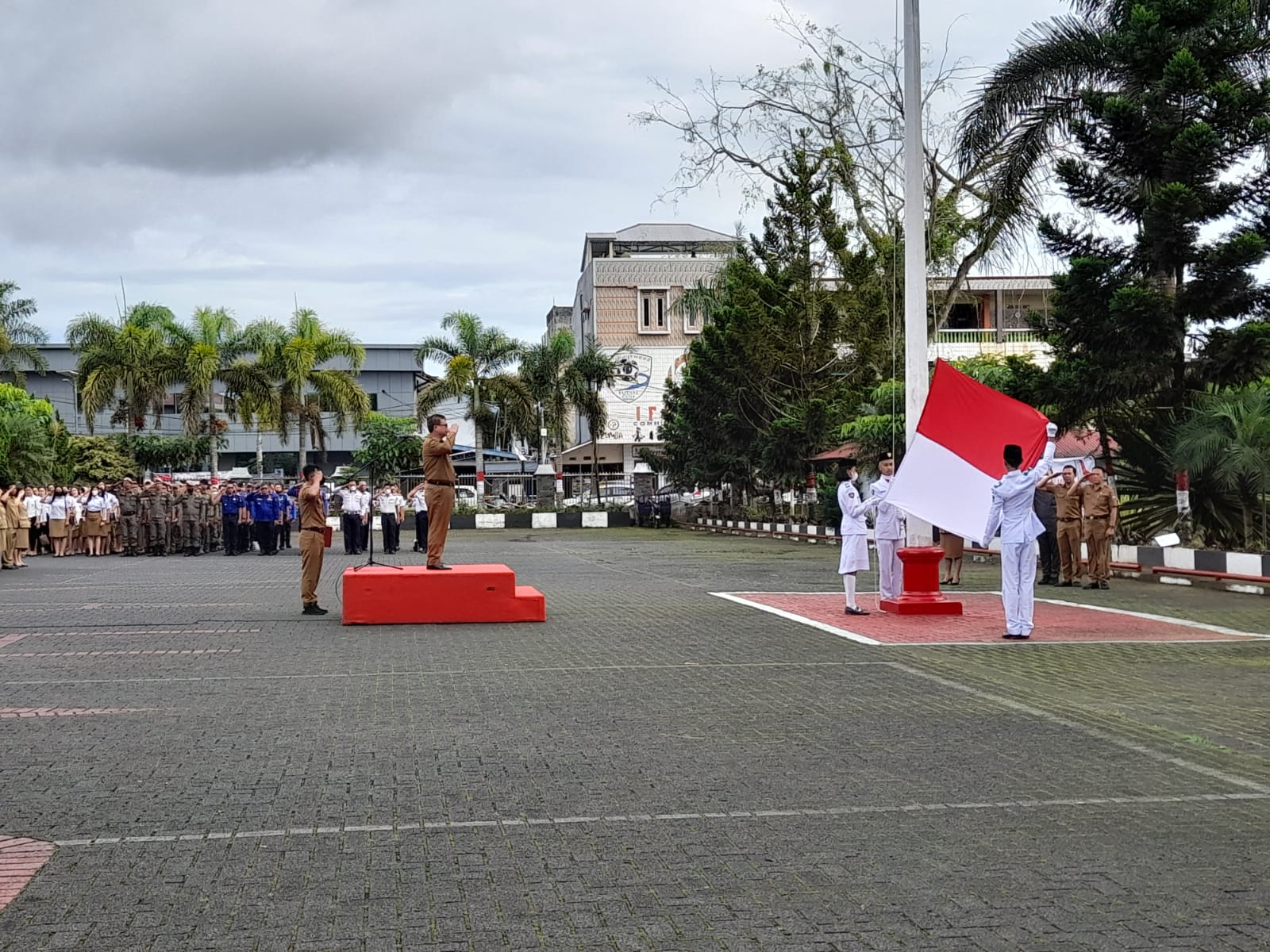 Bertemakan Bangkit Bela Negaraku Jaya Indonesiaku, upacara ini dipimpin Asisten I Pemerintahan dan Kesejahteraan Rakyat PP Setdakab Minahasa, Riviva Maringka yang bertindak sebagai pembina upacara.
