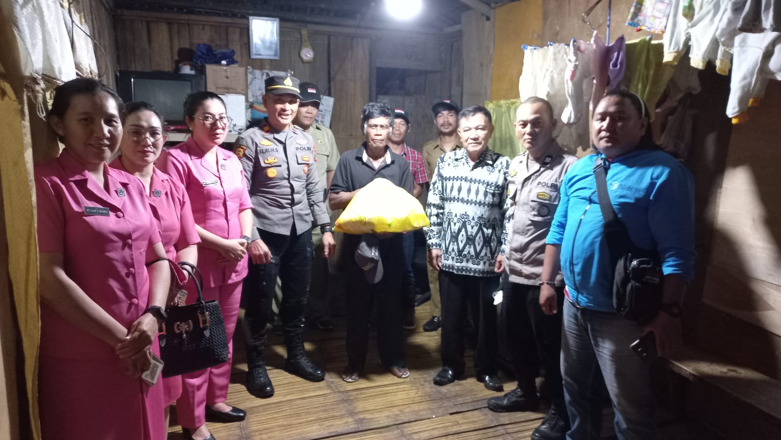 Kunjungan Kapolres Minahasa ke rumah keluarga tidak mampu untuk memberikan bantuan Sosial berupa Paket Sembako.