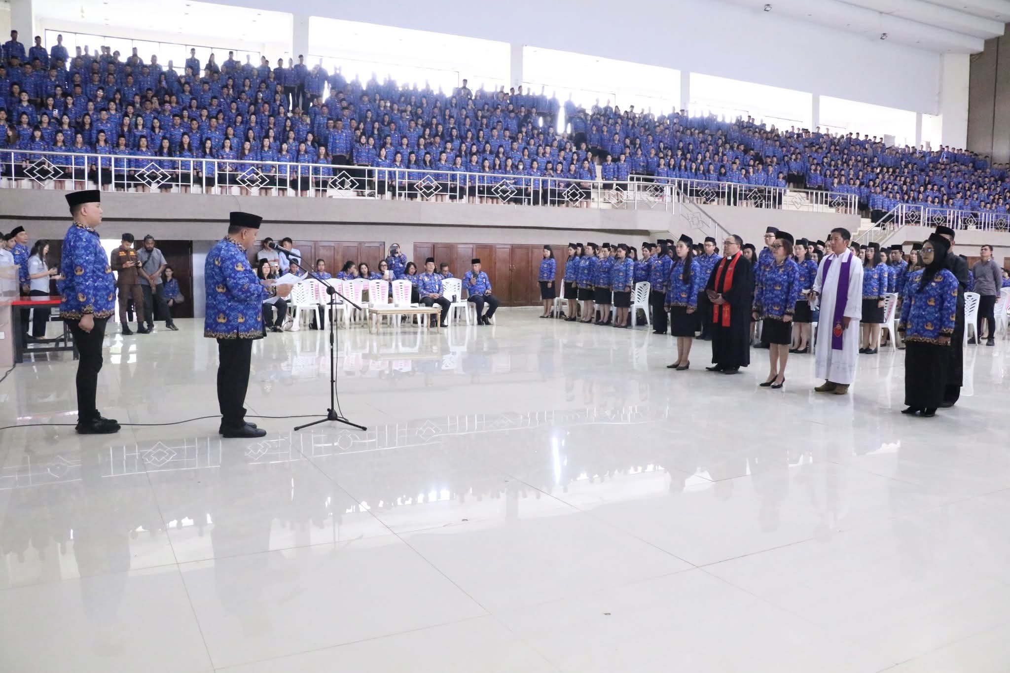 Pilarportal.com,Minahasa – Bupati Minahasa Robby Dondokambey, S.Si, MAP bertindak selaku Inspektur Upacara Peringatan Hari Bela Negara (HBN) ke-77 yang dirangkaikan dengan pengambilan sumpah/janji Pegawai Pemerintah dengan Perjanjian Kerja (PPPK) Tahap II dan PPPK Paruh Waktu. Kegiatan tersebut digelar di Gedung Wale Ne Tou Minahasa, Jumat (19/12/2025).