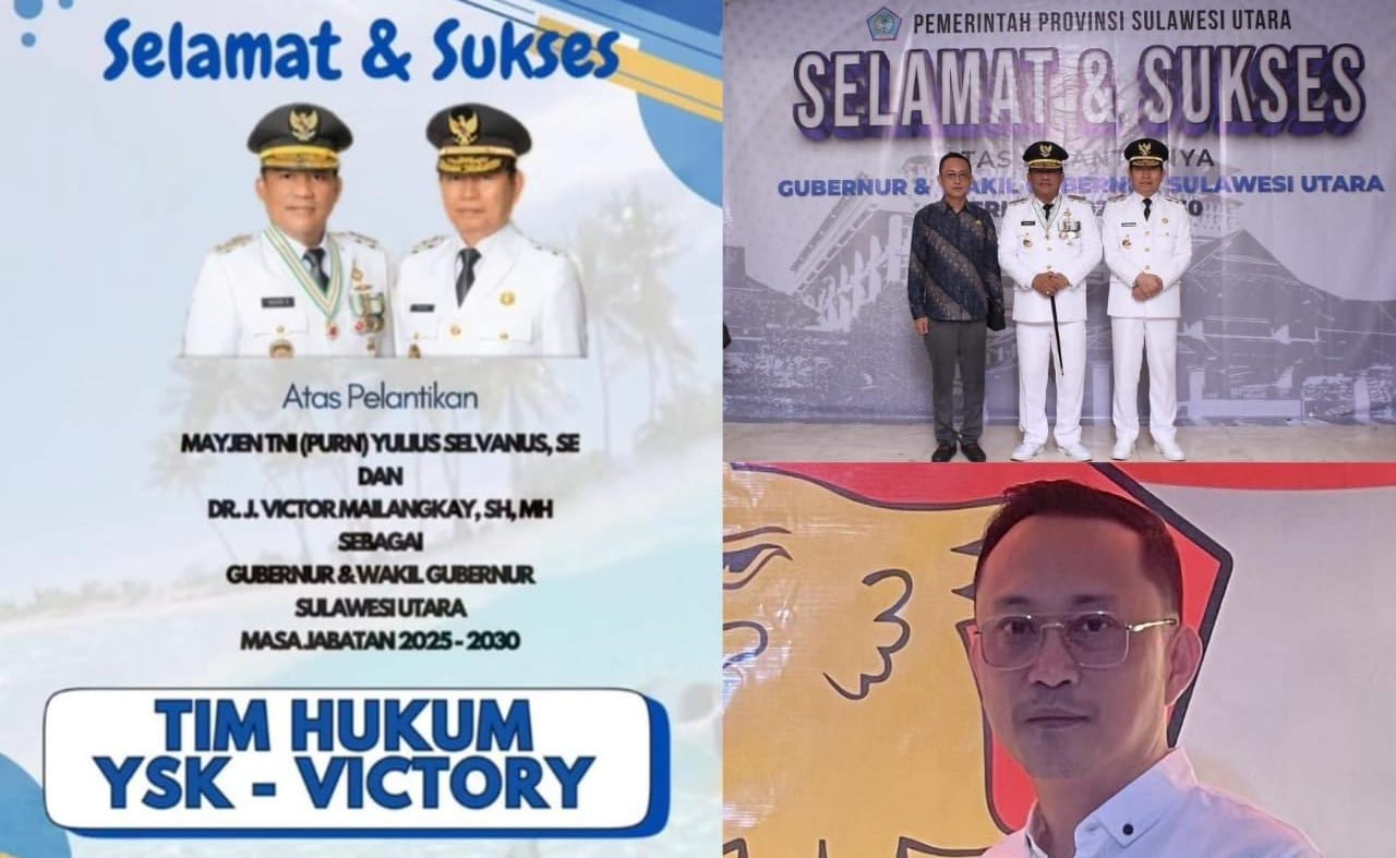 Adv Audy Tujuwale, SH selaku koodinator juru bicara tim hukum YSK Victory sekaligus kader gerindra sulut di hadapan awak media disela2 acara pelantikan menyampaikan rasa syukur dan selamat atas pelantikan Mayjen TNI (Purn) Yulius Selvanus Komaling Sebagai Gubernur Sulawesi Utara dan Dr. Victor Mailangkay, S.H., M.H sebagai Wakil Gubernur Sulut yang baru.