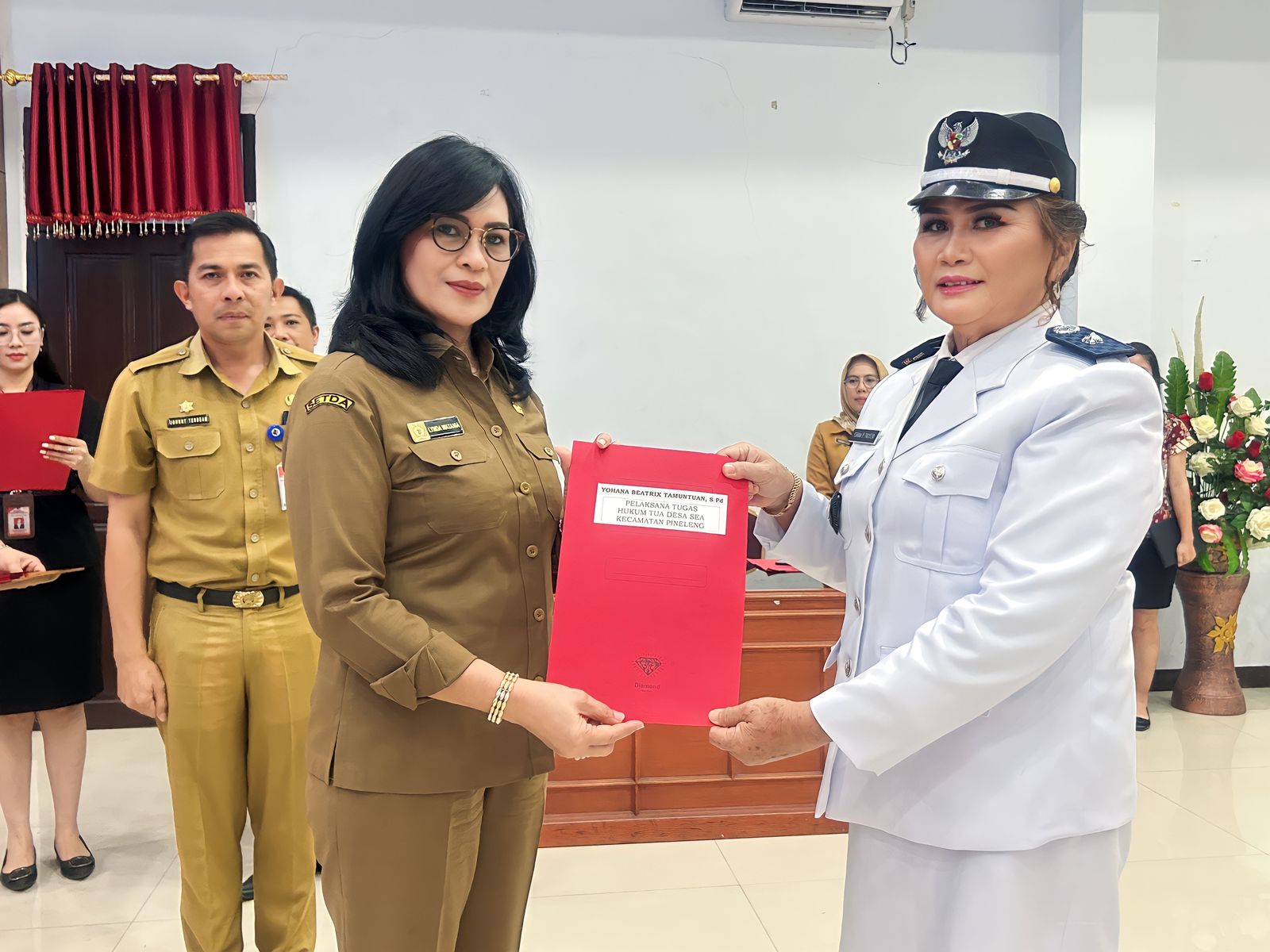 Adapun yang menerima SK Plt tersebut, yakni Yohana Beatrix Tamuntuan SPd, Plt Kumtua Desa Sea, Kecamatan Pineleng. Novita Singkoh SE, Plt Kumtua Desa Kolongan, Kecamatan Kombi. Loura Stery Maindoka SPd, Plt Kumtua Desa Kaweng, Kecamatan Kakas.