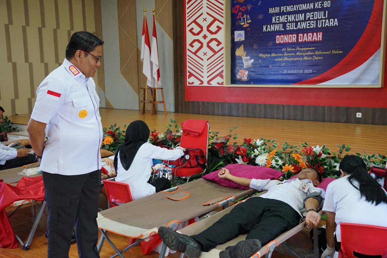 Pilarportal.com, Manado – Kantor Wilayah Kementerian Hukum Sulawesi Utara menggelar kegiatan donor darah dalam rangka memperingati Hari Pengayoman ke-80 Tahun 2025, Rabu (20/8).