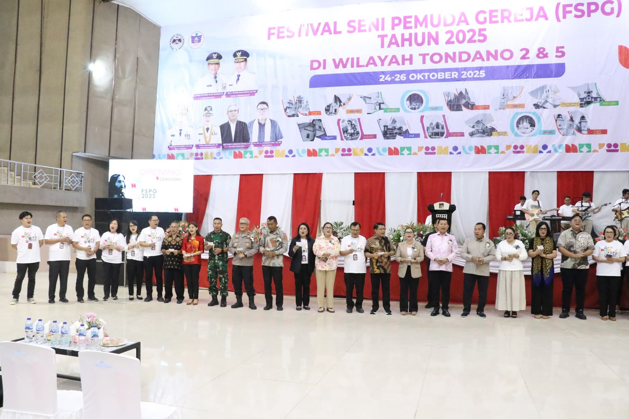 Turut Hadir, Wakil Gubernur Sulawesi Utara Dr. J. Victor Mailangkay, SH, MH. bersama Jajaran Pemprov Sulut. Mewakili BNN Sulut Aprillia Wulandari, SKM. Ketua Komisi Pelayanan Pemuda Sinode GMIM Pnt. Rio Dondokambey, Bs, MM. Kapolres Minahasa diwakili Wakapolres Minahasa Kompol Djonni Rumate, S.Sos, MAP. Dandim 1302 Minahasa Letkol Inf. Bona Ventura, A.F.S, Kepala Kantor Kemenag Kab. Minahasa Pdt. Dolie Tangian, S.Th, M.Pd. Para Anggota DPRD Kab. Minahasa, Ketua Umum Panitia FSPG 2025 Drs. Riviva Maringka, M.Si. Bersama Seluruh Panitia FSPG 2025, BPMS GMIM, Komisi Pemuda Sinode GMIM, Badan Pekerja Majelis Wilayah Tondano 2 dan 5, Badan Pekerja Majelis Jemaat Se-Wilayah Tondano 2 dan 5, Seluruh Pemuda GMIM, Jajaran Pemkab Minahasa, Camat Se-Kabupaten Minahasa.