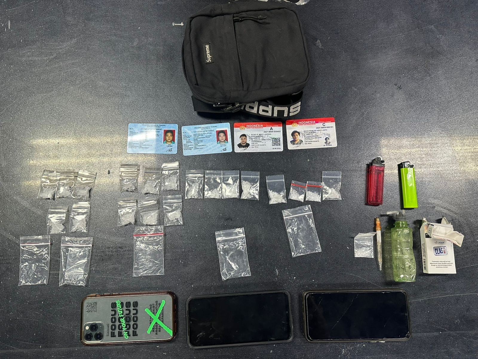 Hasil uji pendahuluan oleh Bidang Laboratorium Forensik (Labfor) Polda Sulawesi Utara mengonfirmasi bahwa barang bukti dengan berat kotor sekitar 17 gram positif mengandung Methamphetamine.