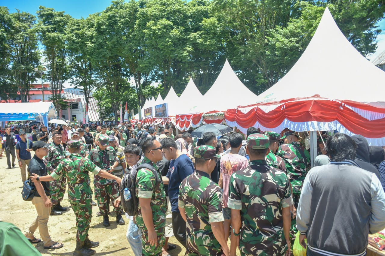 Selain layanan kesehatan, puluhan stan UMKM dan mitra TNI turut serta dalam bazar murah. Mereka menawarkan produk pangan lokal, kebutuhan pokok, hingga berbagai produk rumah tangga dengan harga terjangkau.