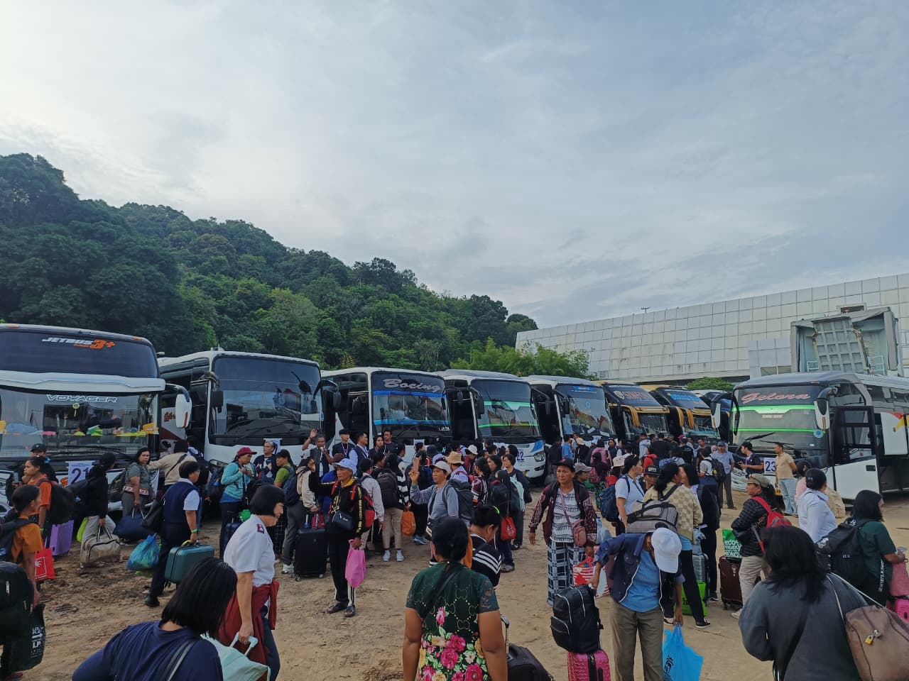 Sebanyak 19 bus membawa peserta menuju Asrama Haji Batakan, Balikpapan Timur, sementara satu bus lainnya langsung menuju Hotel Benakutai, Balikpapan Kota.