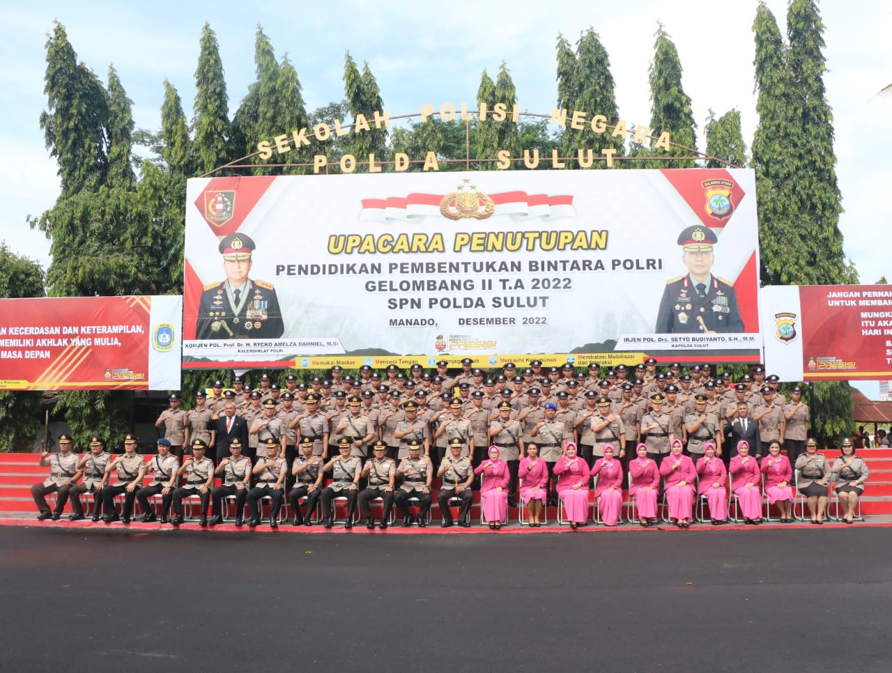 “Ada siswa yang mendapat predikat sebagai siswa cendikia, siswa trengginas, dan siswa tertabah. Kemudian harapannya setelah mereka berdinas di Polda Sulut maupun di kesatuan yang lain, semoga dapat melaksanakan tugas dengan baik terutama dalam memberikan pelayanan, perlindungan, dan pengayoman kepada seluruh masyarakat, sebagaimana amanat Kalemdiklat Polri,” pungkas Irjen Pol Setyo Budiyanto.
