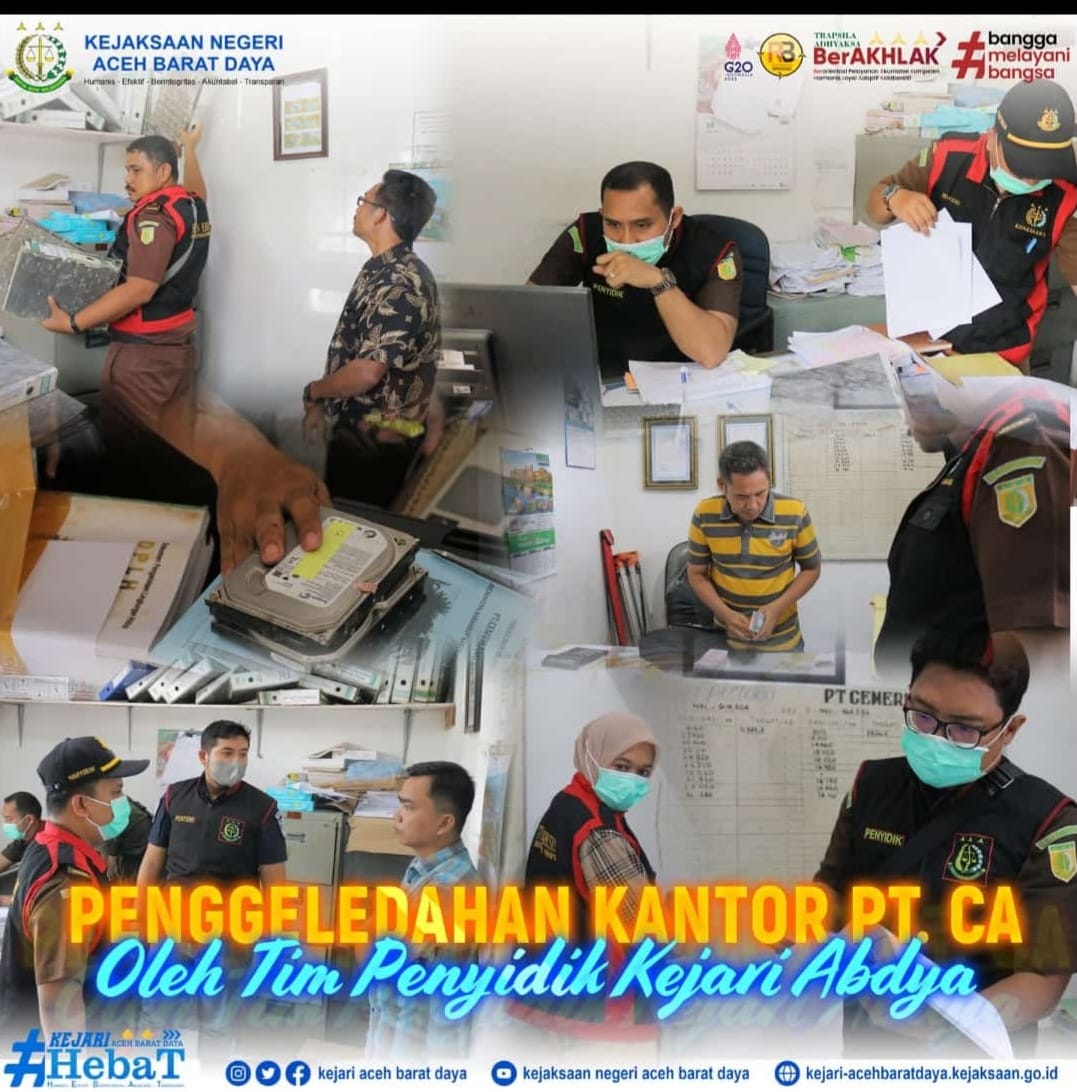 Kegiatan penggeledahan ini dipimpin oleh Kasi Tindak Pidana Khusus Riki Guswandri, S.H., Kasi Intelijen Joni Astriaman, S.H., Kasi Tindak Pidana Umum Fakhrul Rozi Sihotang, S.H., M.H., Kasi PB3R Melta Variza, S.H., M.H., serta Jaksa penyidik lainnya dan disaksikan oleh Manager, Asisten Manager beserta sejumlah Karyawan PT. CA serta keuchik Desa Cot Seumantok dan Desa Pante Rakyat.