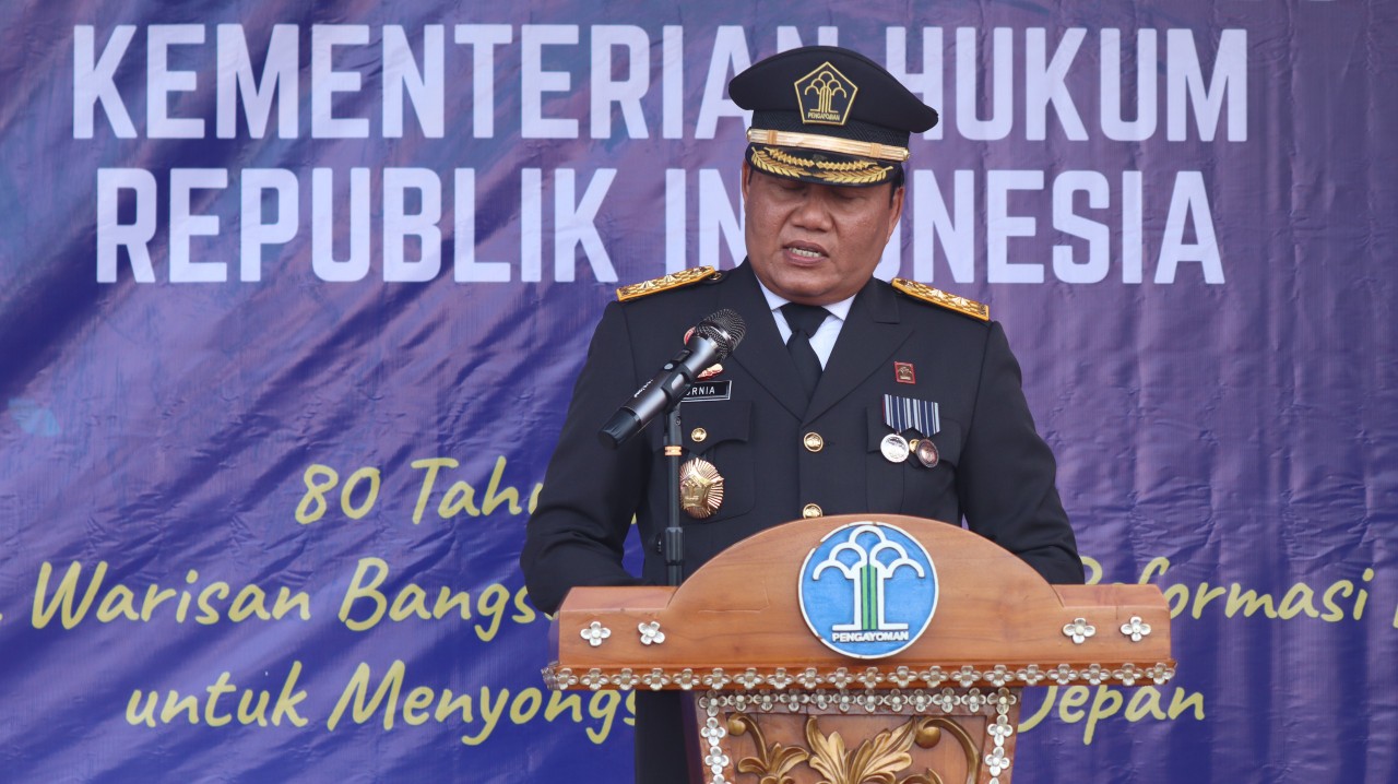 “Ketiga, menyongsong masa depan berarti menyiapkan hukum yang mengantar bangsa menuju Indonesia Emas 2045,” ucap Kurniaman saat membacakan sambutan.