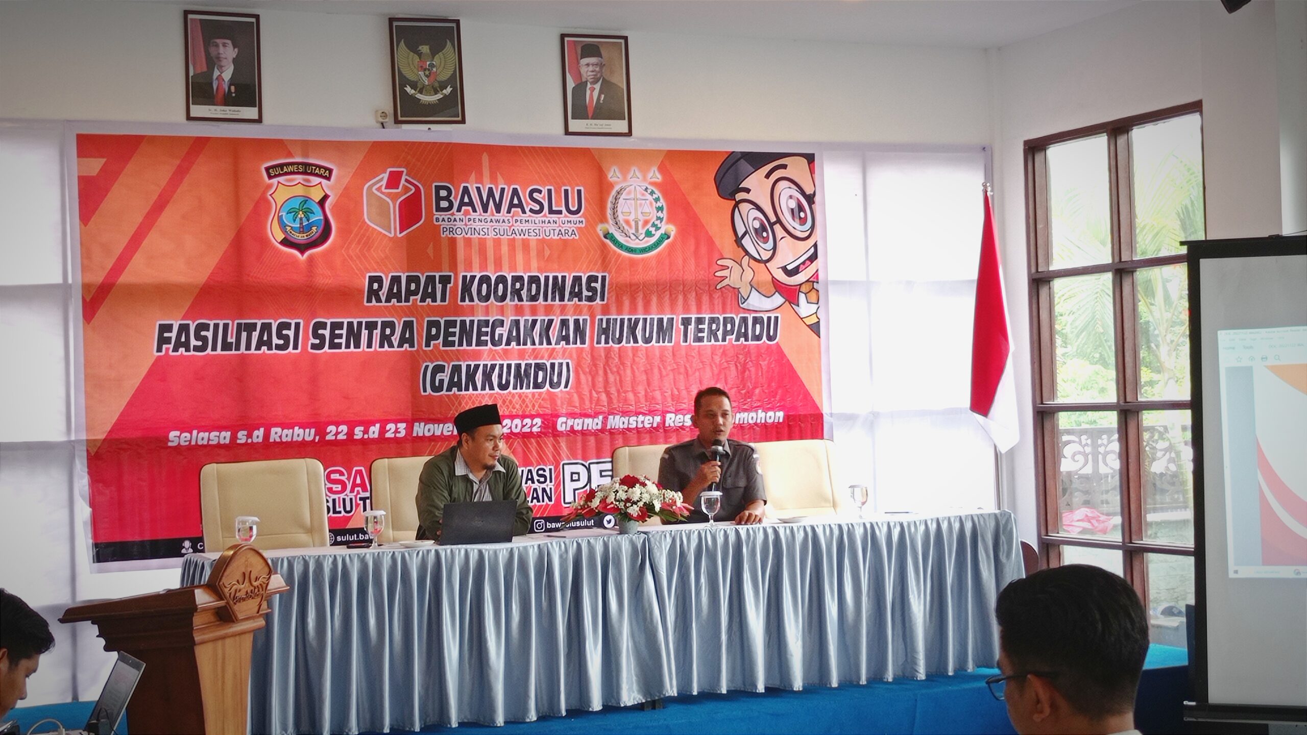 Pilarportal.com,Tomohon – Badan Pengawas Pemilihan Umum (Bawaslu) Provinsi Sulawesi Utara melaksanakan Rapat Koordinasi Fasilitasi Sentra Penegakkan Hukum Terpadu (GAKKUMDU). Selasa (22/11/2022) bertempat Grand Master Resort Kota Tomohon, Kelurahan Kakaskasen Satu.