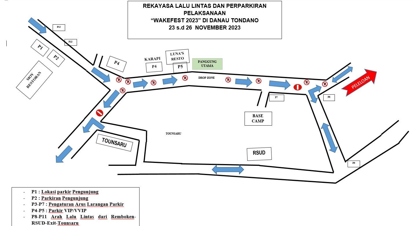 Kepala Dinas Komunikasi dan Informatika Kabupaten Minahasa Maya Kainde menjelaskan, Rekayasa Lalu Lintas satu arah dari Benteng Moraya sampai dengan Pertigaan Ex Fesbudaton Peloloan dan pertigaan Peloloan Tonsaru sampai Pintu utara Unima dan untuk Ruas Pertigaan Peleloan Tonsaru sampai Pertigaan Ex fesbudaton, dipakai sebagai akses VVIP dan kawasan larangan parkir di badan jalan.