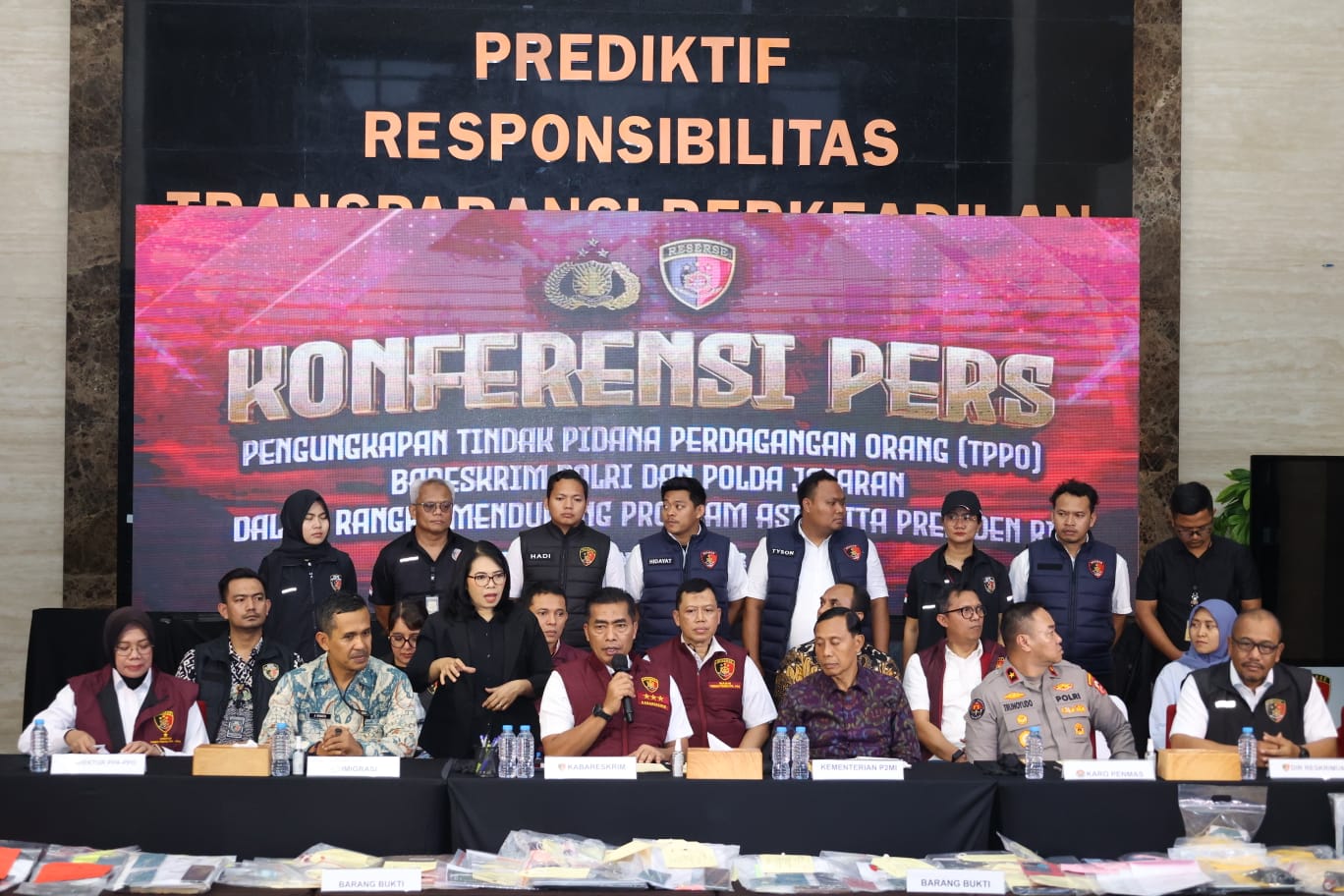 “Bareksrim Polri beserta Polda jajaran dan instansi terkait, sepanjang periode 22 Oktober sampai 22 November 2024, telah berhasil mengungkap jaringan TPPO sebanyak 397 kasus, 482 orang tersangka, dan berhasil menyelamatkan 904 korban TPPO,” ungkap Kabareskrim Komjen Pol. Wahyu Widada dalam konferensi pers, Jumat (22/11/24).