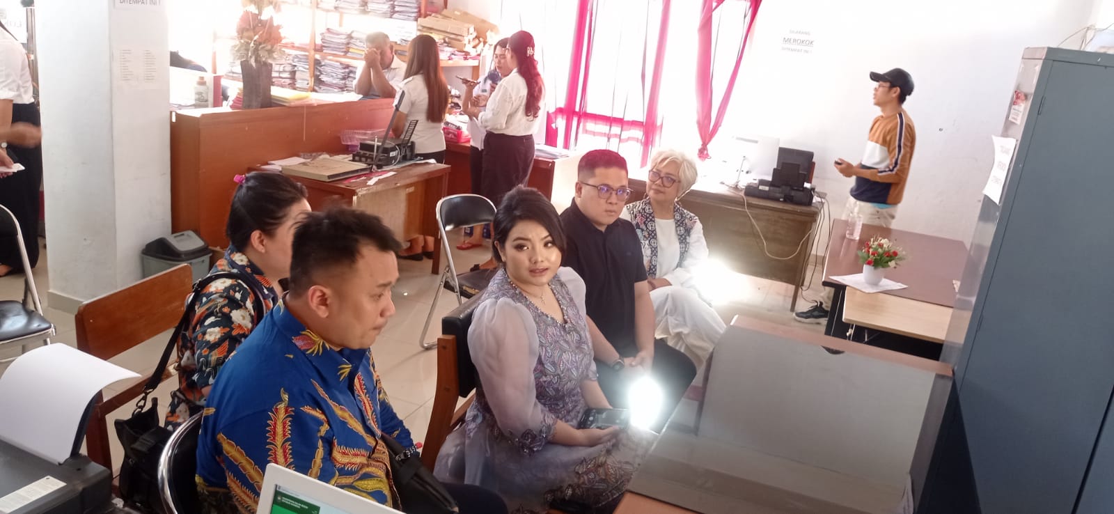 Dengan menunggu kurang lebih dua jam, akhirnya dengan koordinasi yang kompleks, ada pejabat yang menandatangani berkas-berkas untuk pernikahan.